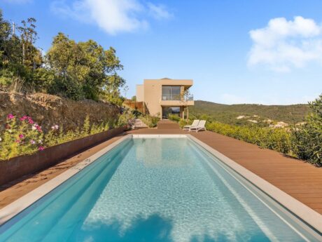 Das Design der neuen Villa in Ceret ist ultramodern mit 4 geräumigen Suiten mit eigenen Badezimmern. Das 11.000 m2 große Grundstück ist eingezäunt und bietet einen unverbaubaren Rundumblick. Der 11 Meter lange Swimmingpool ist beheizt und mit einer Salzwasserfilteranlage ausgestattet. Rund um den Pool haben Sie eine 110 m2 Lounge-Sonnenterrasse. Die Suiten bieten direkten Zugang zum Poolbereich.