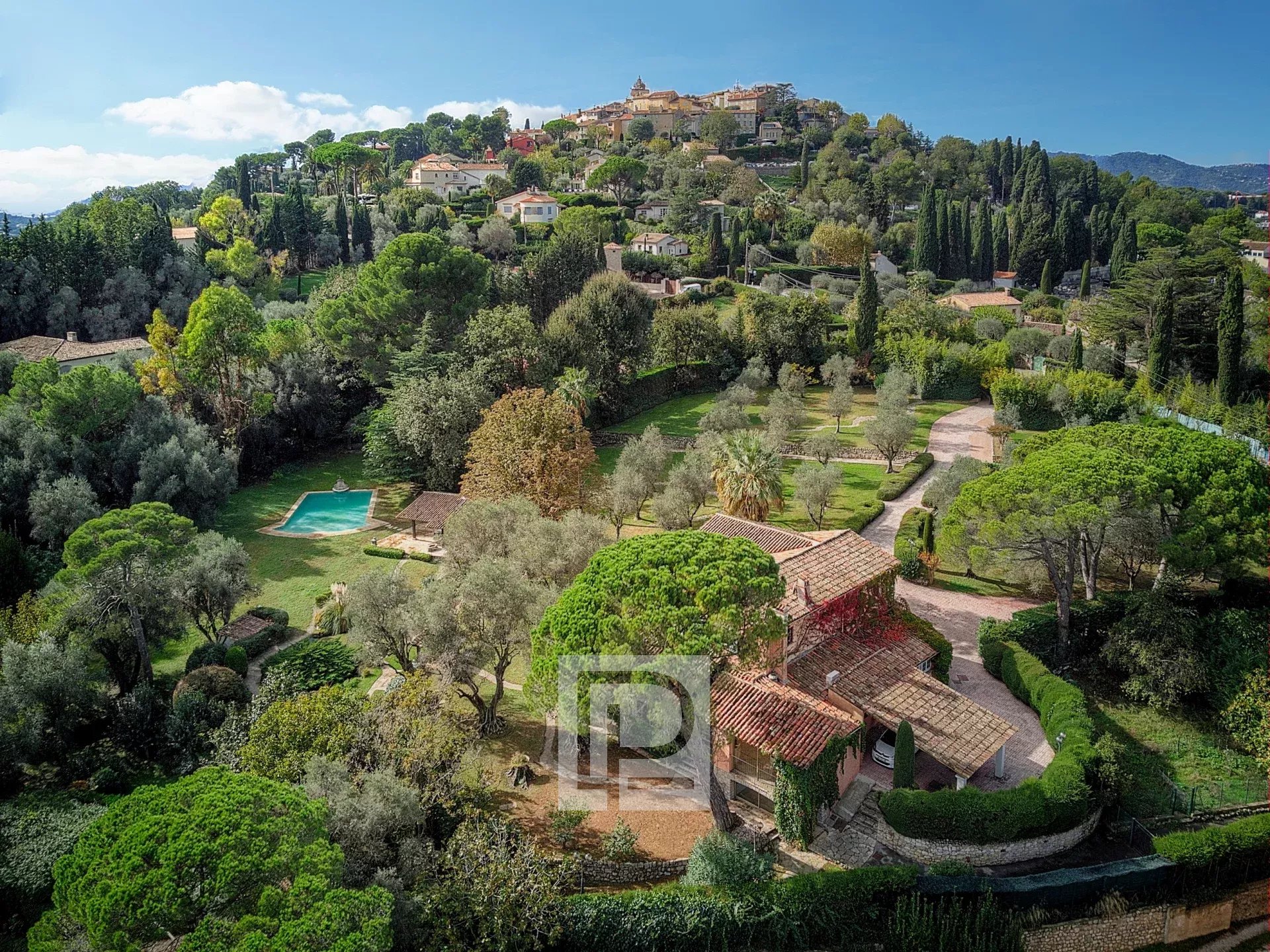 Nur einen Steinwurf vom Dorf Mougins entfernt, umfasst dieses Anwesen ein Herrenhaus mit Erweiterungsprojekt in einem perfekt angelegten, fast einen Hektar großen Park mit herrlichem Olivenhain.