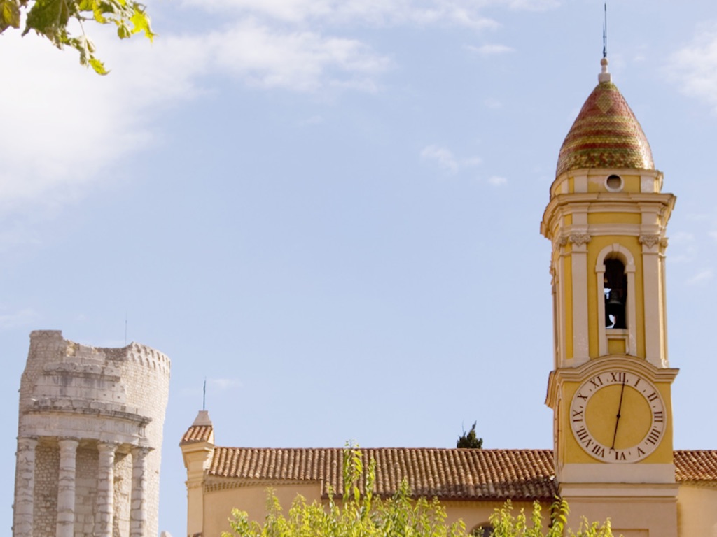 Mit Blick auf das Fürstentum Monaco, wie ein Balkon über dem Mittelmeer, scheint die kleine Stadt La Turbie aus der Ferne im Azurblau zu schweben, dominiert von ihrer gigantischen Augustus-Trophäe.