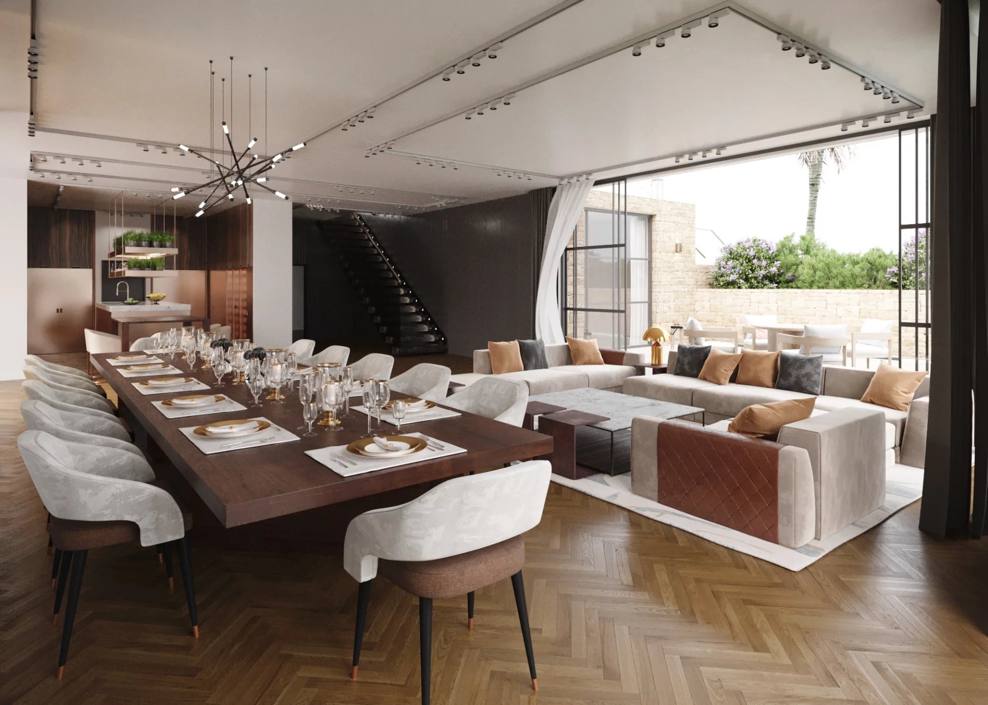 Die Villa verfügt über hochwertige Annehmlichkeiten, darunter einen Wellnessbereich mit Hamam und Whirlpool.