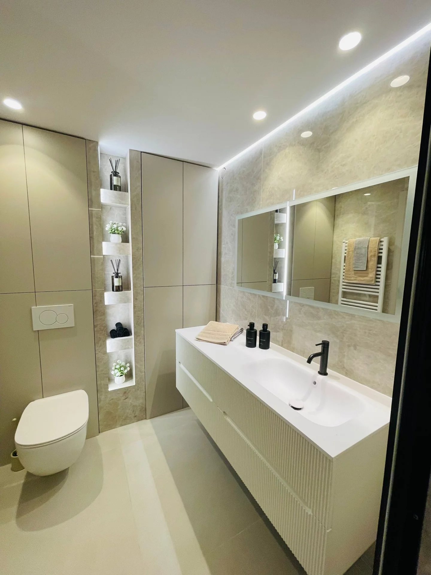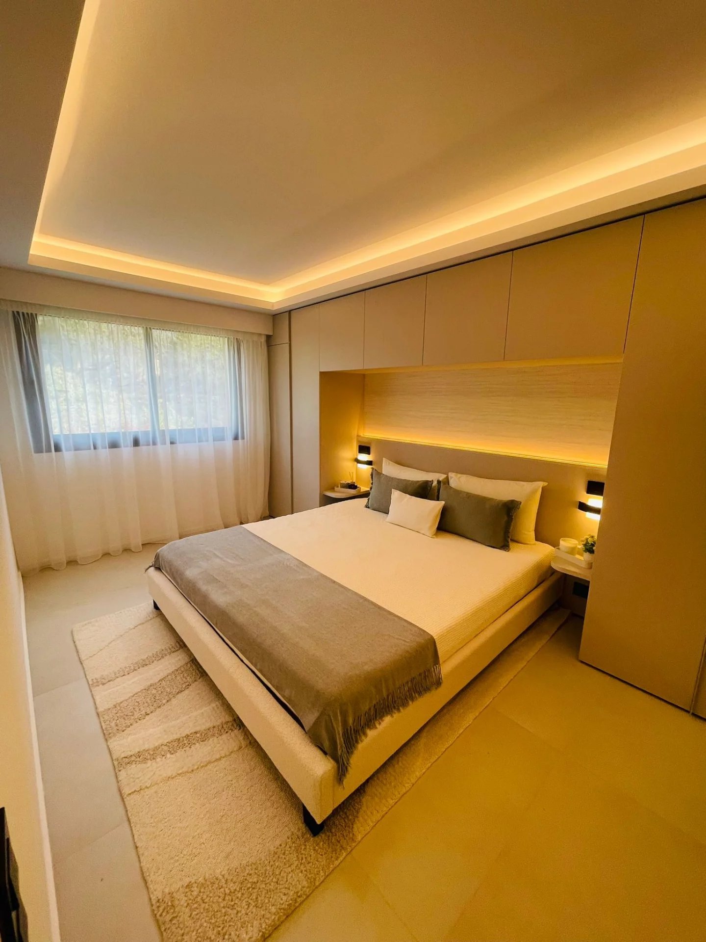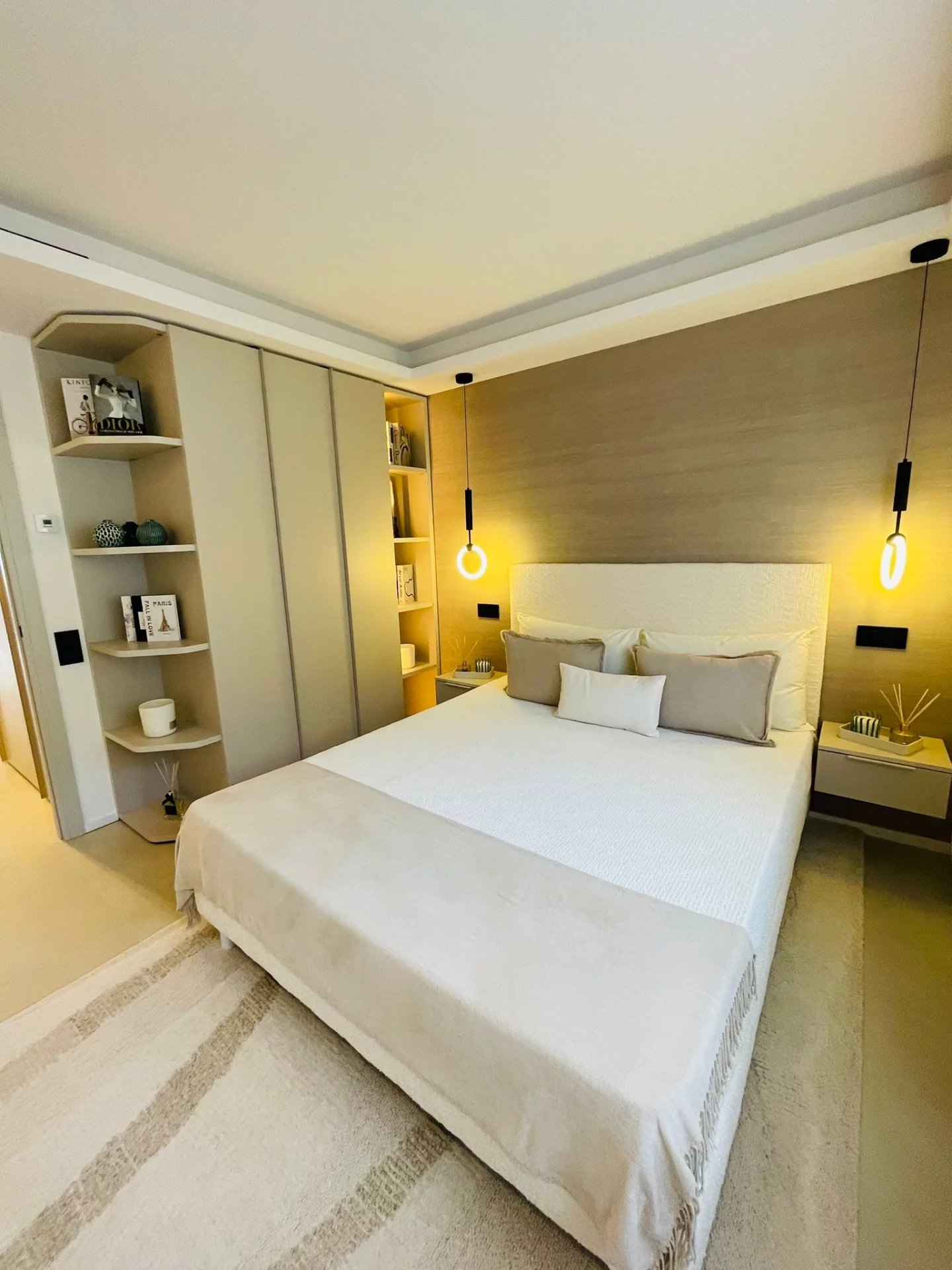 Der Nachtbereich umfasst zwei komfortable Schlafzimmer, jedes mit eigenem Duschbad und WC. Die Immobilie ist voll klimatisiert und verfügt über eine hochwertige Ausstattung.