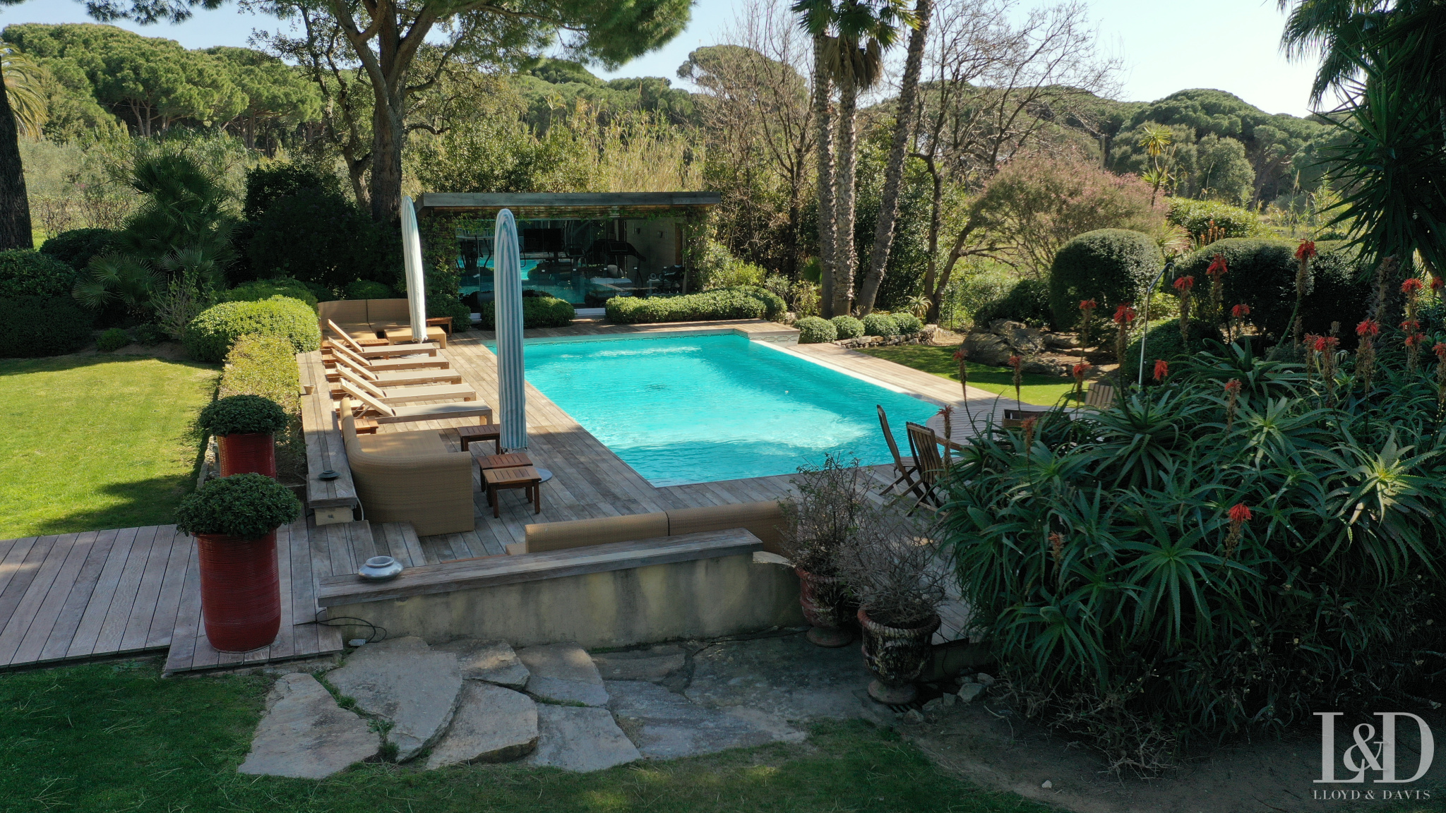 In einem Wohngebiet mit Bäumen, ruhig und 5 Minuten vom Strand entfernt, profitiert diese schöne Villa mit einer Wohnfläche von 338 m2 und, gebaut auf einem herrlichen Grundstück von 6700 m2, von einer privilegierten Umgebung mit üppiger Vegetation (Obstbäume, Pinien, Olivenbäume, …). Ein komfortabler Swimmingpool, zwei Spas, ein Hamam und ein Fitnessstudio sorgen für Ihr Wohlbefinden, während Sie nur 5 Minuten vom mythischen Strand von Pampelonne entfernt sind. Letzteres bietet mit seinen 5 Schlafzimmern, Wohnzimmern, Duschräumen, Ankleidezimmer, Weinkeller, Waschküche und Solarium schöne Volumen. Bestehend aus zwei unabhängigen Wohnungen, die von innen miteinander kommunizieren können. P