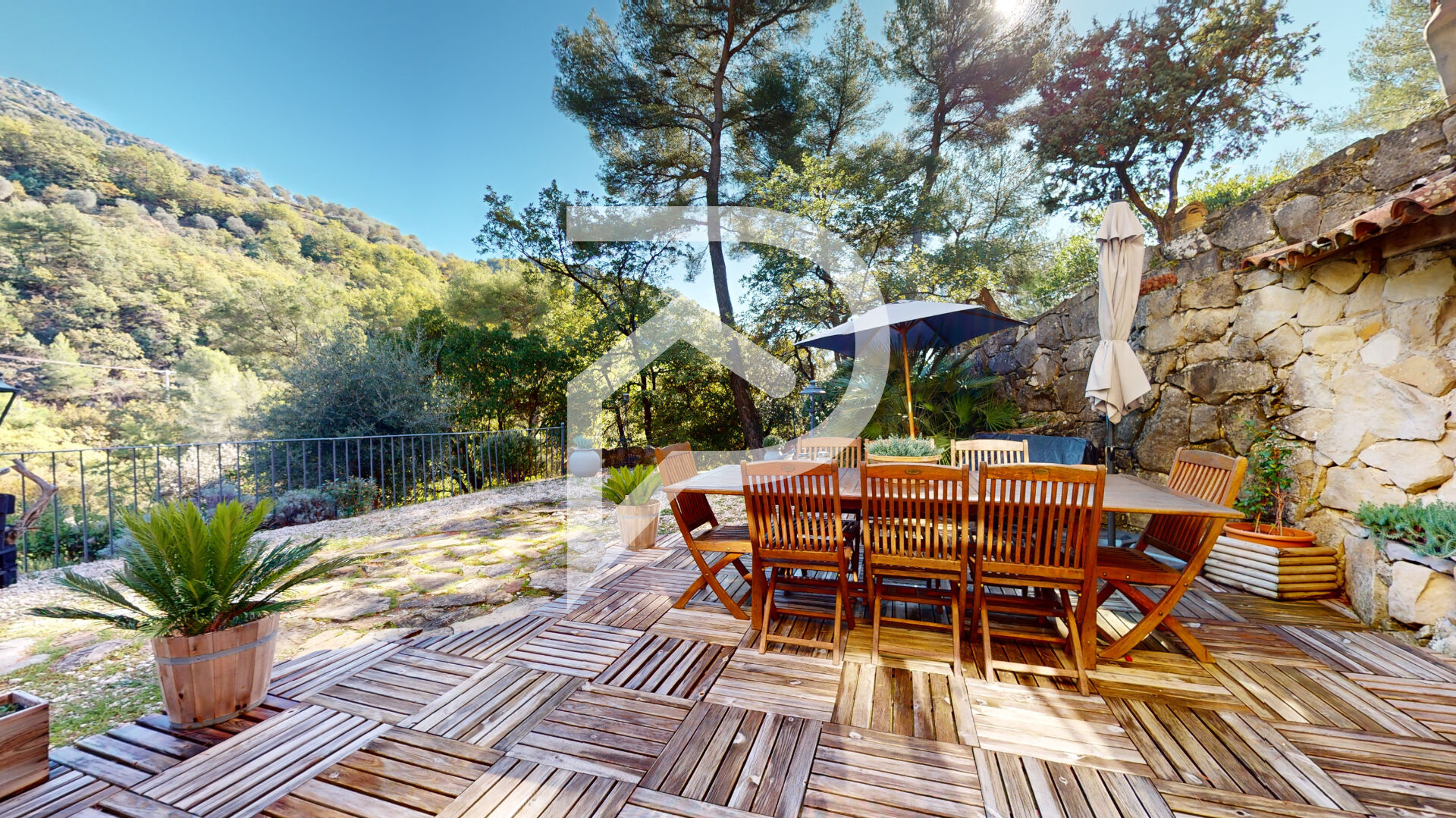Zahlreiche Außenbereiche ermöglichen es Ihnen, gesellige Momente mit Familie und Freunden zu verbringen. Dazu gehört, Sie am Pool, auf einer der Terrassen oder im Garten zu treffen und so die Ankunft der Hirsche am Fuße des Grundstücks zu genießen.