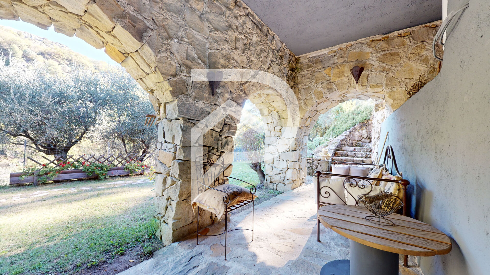 Das Erdgeschoss ist mit dem gesamten Haus verbunden, kann aber auch als Nebengebäude mit eigenem Zugang betrachtet werden. Dieser gesamte Teil wurde komplett renoviert. Es gibt ein Wohnzimmer, eine Küche, ein Duschbad mit Toilette sowie ein Schlafzimmer und einen Schlafbereich. Alle Räume öffnen sich auf eine überdachte Terrasse.