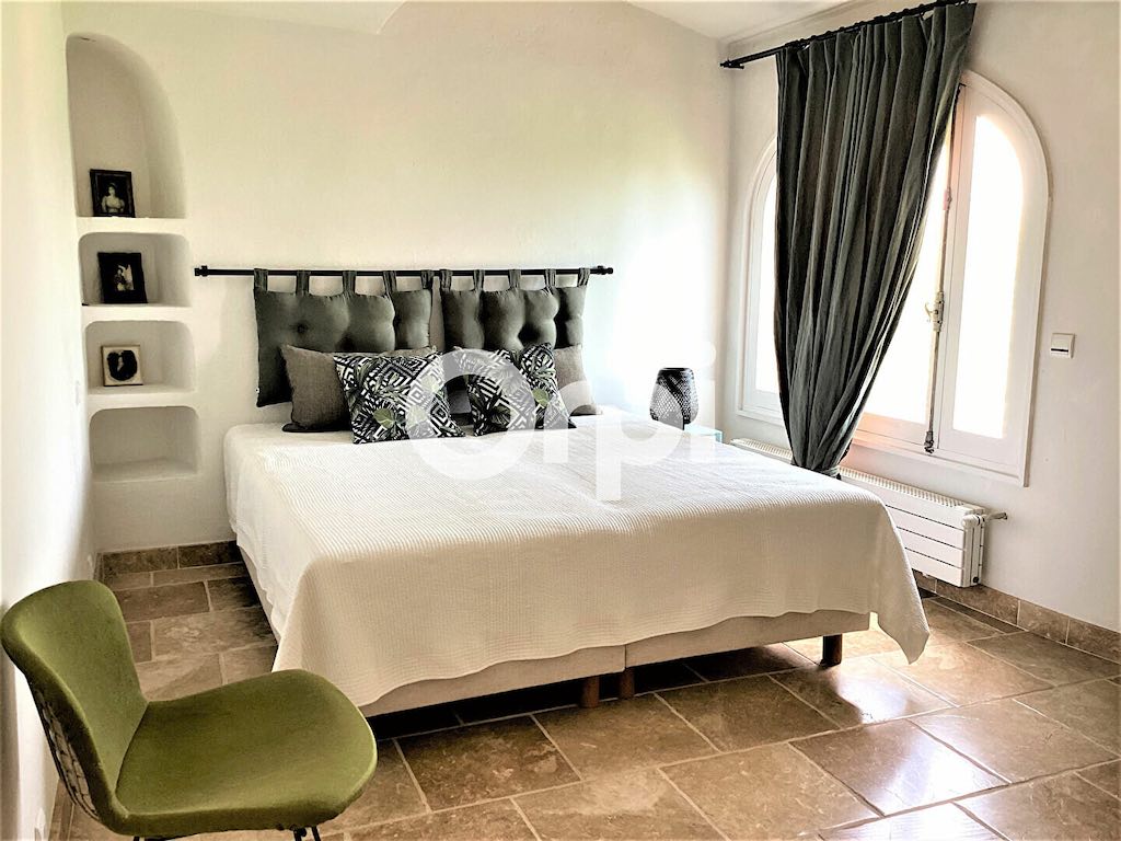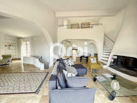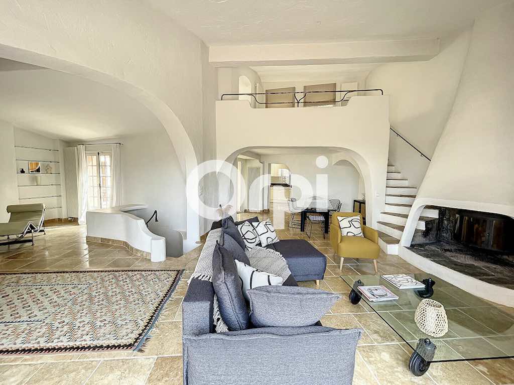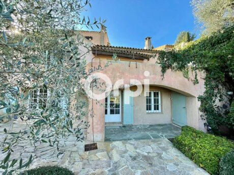 Am Fuße der mittelalterlichen Burg der prestigeträchtigen Domaine Castellaras Le Vieux, gelegen in Mouans Sartoux zwischen Mougins und Valbonne, äußerst geschlossenes und sicheres Wohngebiet, entworfen vom berühmten Architekten Jacques Couelle, Villa von ca. 205 m2 mit Panoramablick auf das Meer und die Berge.