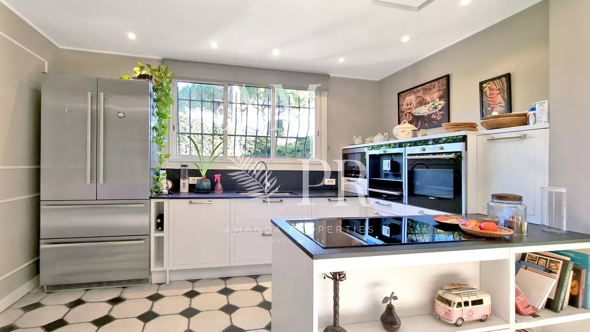 Das Äußere offenbart eine wahrhaft einzigartige Umgebung: ein 1.600 m² großer privater Garten, eine üppige grüne Oase mit einem privaten Pool, einem Jacuzzi und mehreren Entspannungsbereichen – alles völlig abgeschieden, was in Cannes äußerst selten ist.