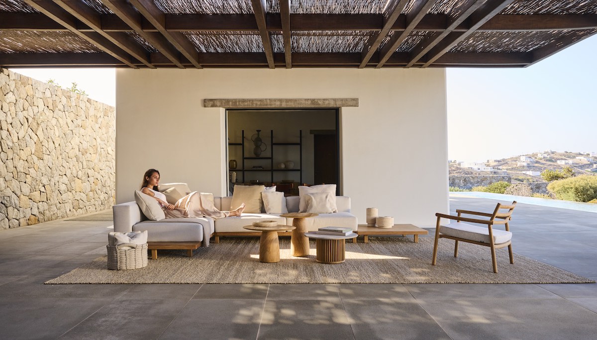 Natürlich möchten Sie den Stil auch drinnen sehen, wie er sich draußen in Ihrem Garten und rund um den Swimmingpool widerspiegelt. Ein geräumiges Sofa, das nassen (Enkel-)Kindern standhält, schöne Sonnenliegen mit Kissen, die zum Träumen in der Sonne einladen, Esstische für lange Sommerabende im Freien mit bequemen Stühlen, die auch nach Mitternacht bequem bleiben.