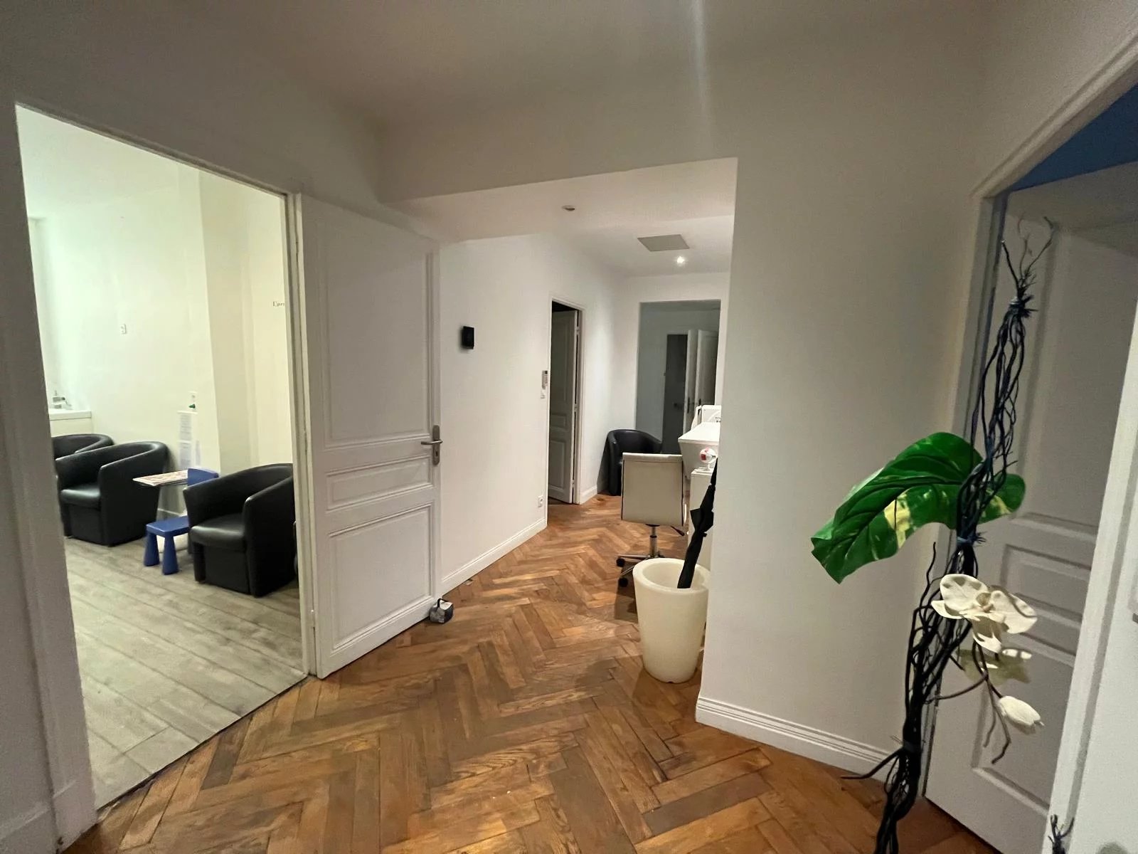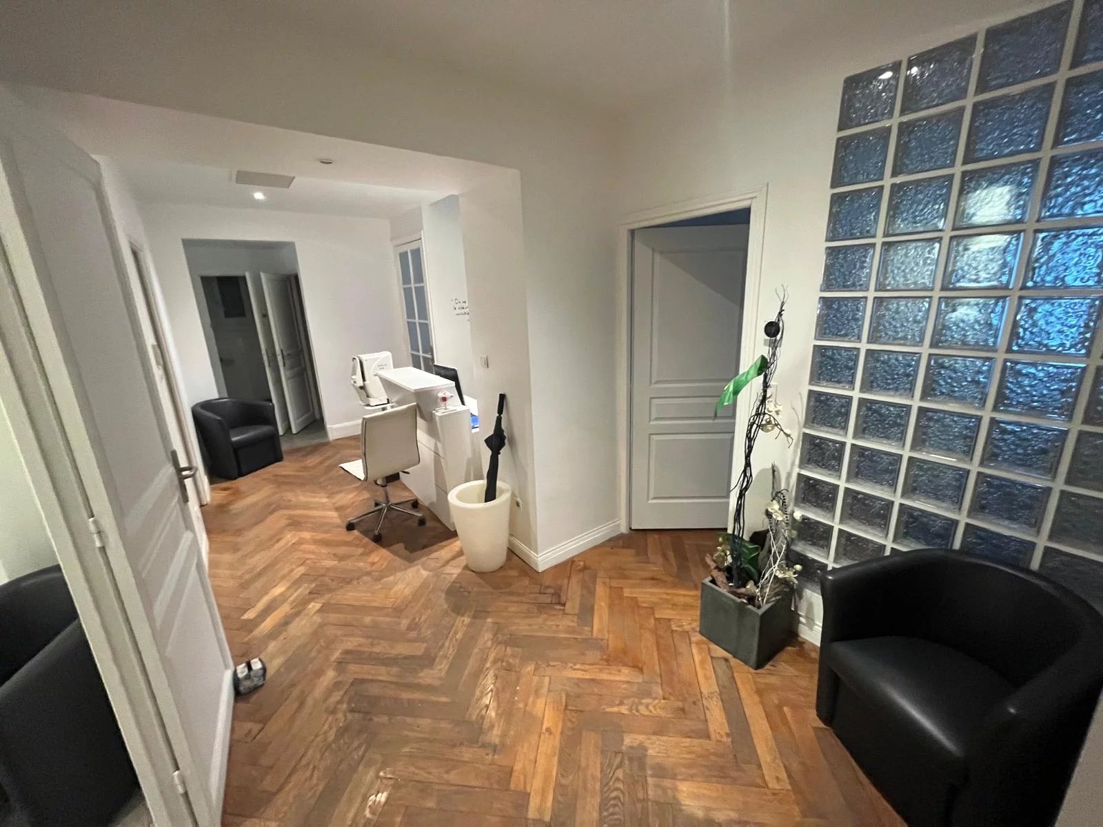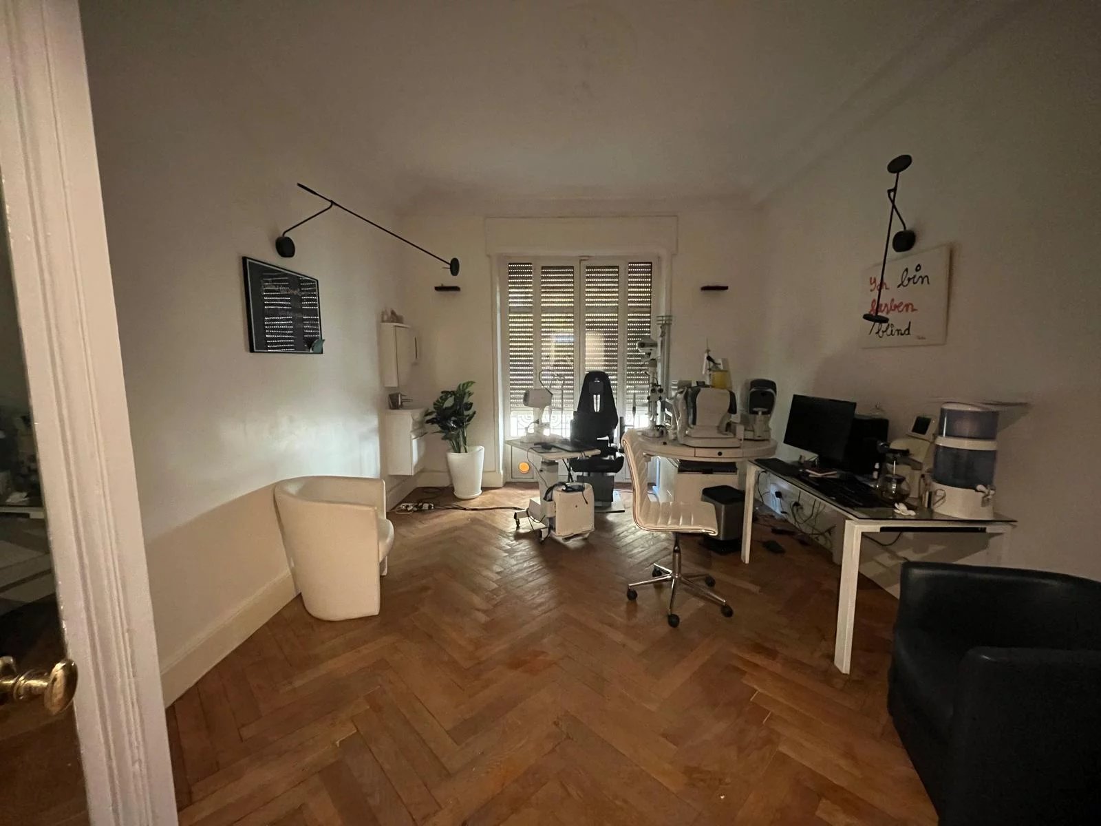 Cet appartement de plein pied de 150 m2 en Rez de chaussé, traversant est-ouest est aujourd’hui aménagé pour partie en une activité médicale comprenant une réception, une salle d’attente, deux bureaux, une salle de douche et wc et une autre partie à usage d’habitation comprenant une cuisine, un salon, et deux chambres avec salle de douche et wc. En configuration uniquement professionnel, il est possible d’avoir 6 bureaux + une réception. Immeuble bourgeois avec façade ravalée. Belles parties communes. Une cave et une chambre de bonne complète ce bien.
