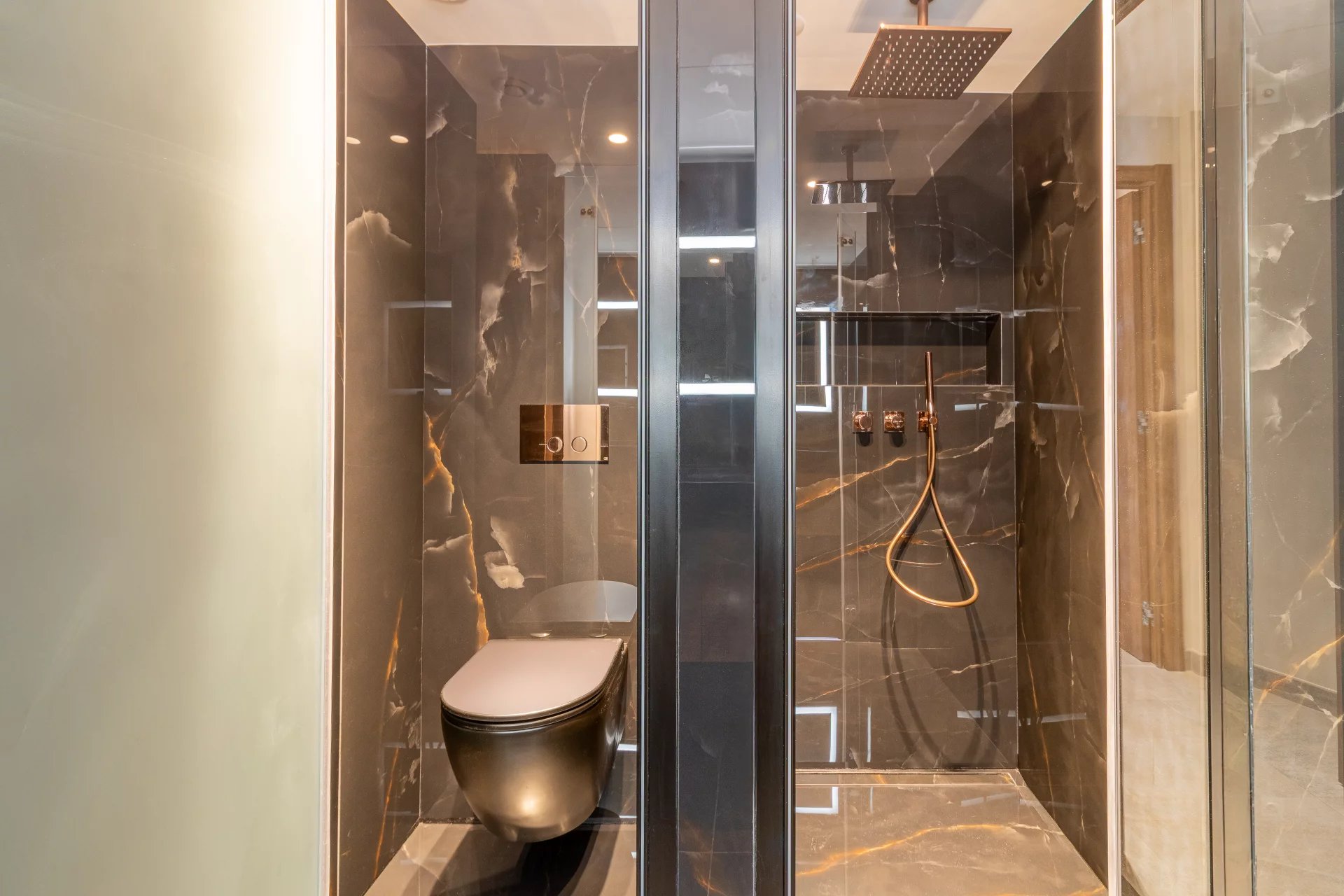 Le bien dispose d’une très belle salle de douche équipée de deux vasques, ainsi que d’une grande cuisine aménagée et entièrement équipée, avec des matériaux et équipements haut de gamme.