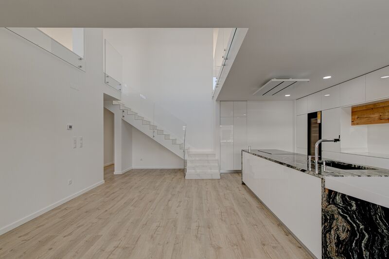 Fantastique appartement 4 duplex deux façades à Montijo, en construction. Excellent emplacement aux portes de Montijo, à proximité des accès au pont Vasco da Gama et à proximité de toutes sortes de commerces et services. Ce 4 appartement en duplex avec 404m² de surface brute, ce qui lui confère une surface habitable généreuse. Situé au 4ème étage, cette propriété dispose de quatre chambres, dont trois orientées vers la source et desservies par un balcon commun. L'une des chambres est une suite généreuse. L'appartement est complété par une salle de bain pour soutenir les autres chambres et un support pour l'espace social, un salon et une cuisine au format open space et également un balcon avec barbecue sur toute la largeur de l'appartement avec un généreux 19m². C'est aux portes de Montijo, près des accès au pont Vasco da Gama et à proximité de toutes sortes de commerces et de services, que se trouve ce nouveau lotissement. Composé de trois immeubles, cet immeuble compte 30 nouvelles maisons dont les typologies vont du T1 au T4, également avec des unités T3 et T4 duplex. Remarquable, non seulement son architecture audacieuse, mais aussi le niveau d'excellence de sa construction et finitions, avec cuisines entièrement équipées avec appareils Siemens et Vinoteca Liebherr, stores électriques et thermiques, chauffage au sol électrique, climatisation avec multi splits, vaisselle suspendue dans les toilettes, aspirateur central et aussi l'installation de panneaux solaires Vulcan pour le chauffage de l'eau. Tous ces facteurs permettent aux appartements d'avoir une pré-certification énergétique de classe A. Enfin, cet appartement est complété par un garage et un débarras au sous-sol.