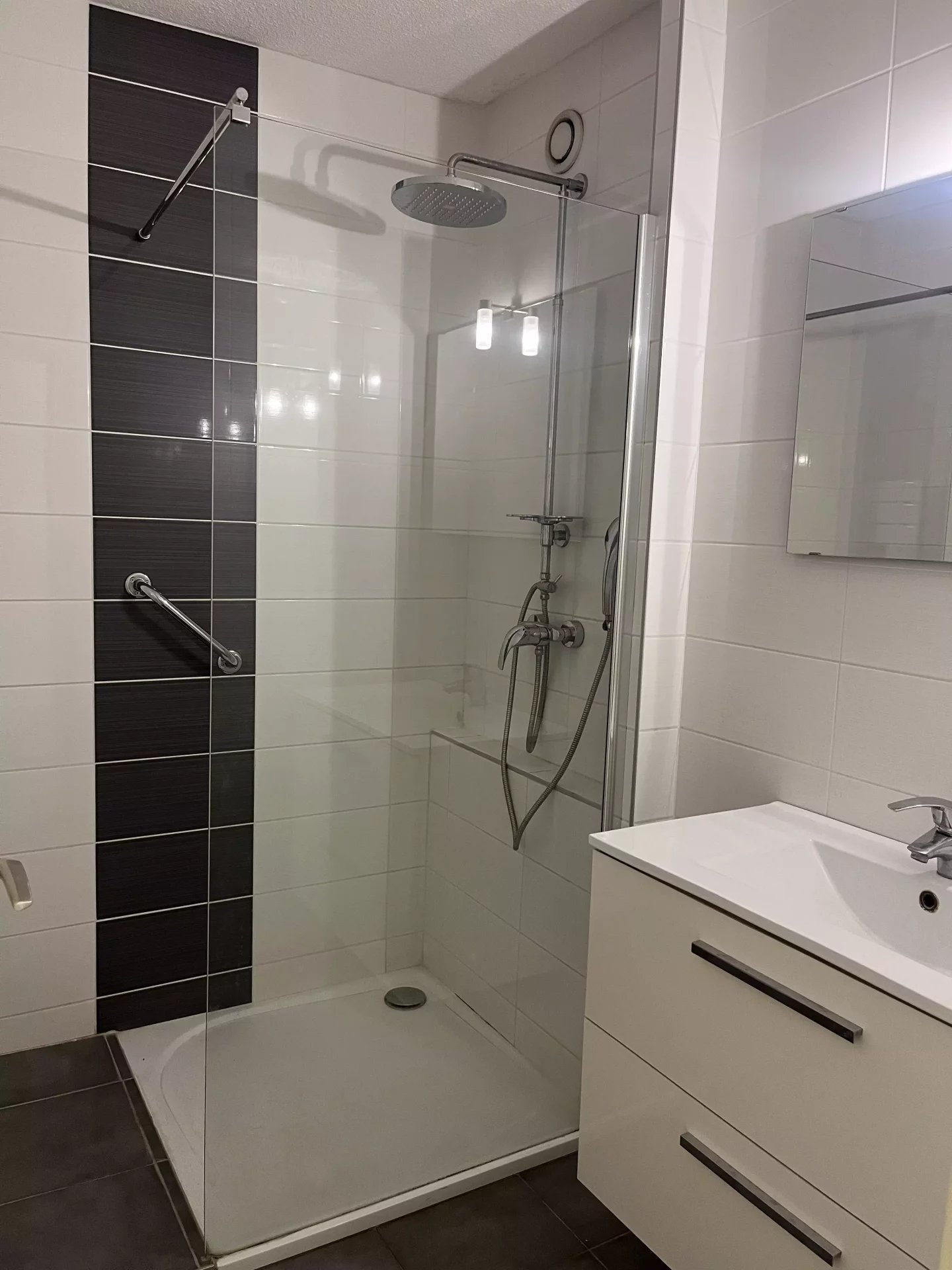 Les grandes baies vitrées coulissantes permettent une excellente luminosité naturelle, tandis que les équipements modernes comme l’accès handicapé et le système d’alarme incendie assurent sécurité et praticité. L’immeuble dispose également d’un ascenseur, d’un interphone et d’une vidéosurveillance pour un confort optimal.