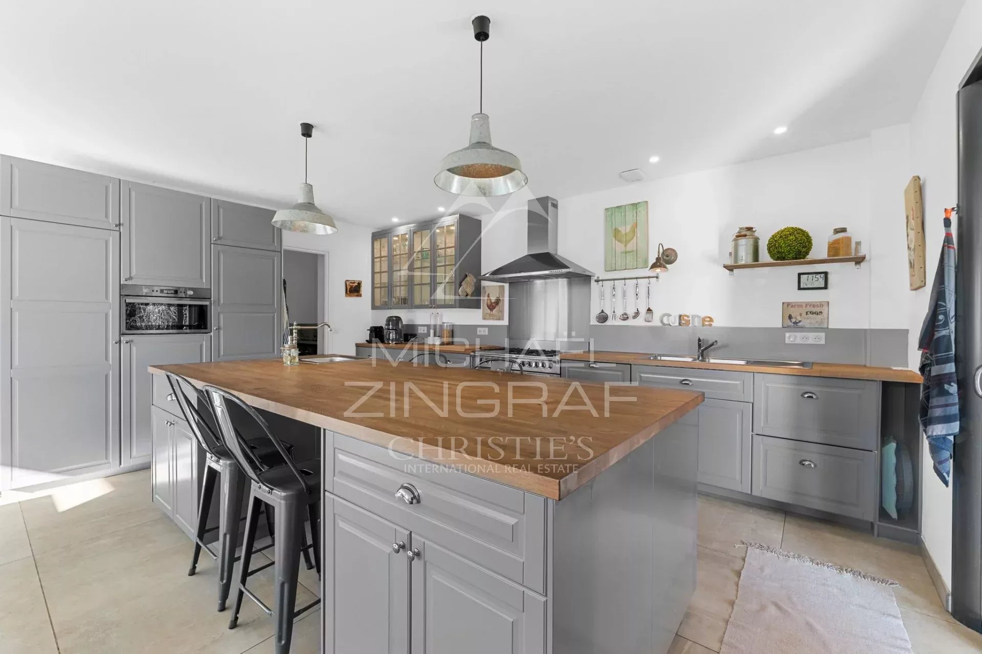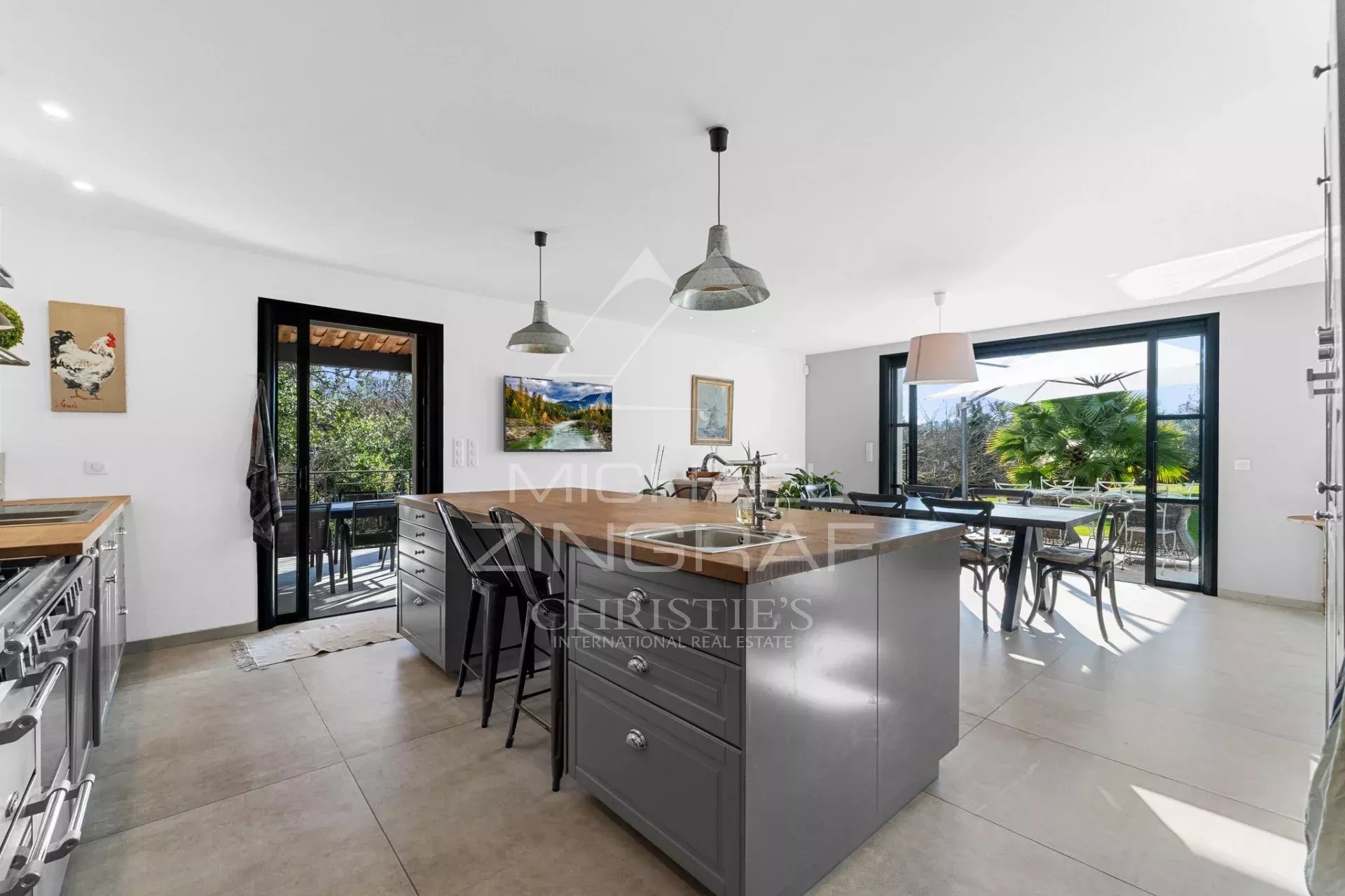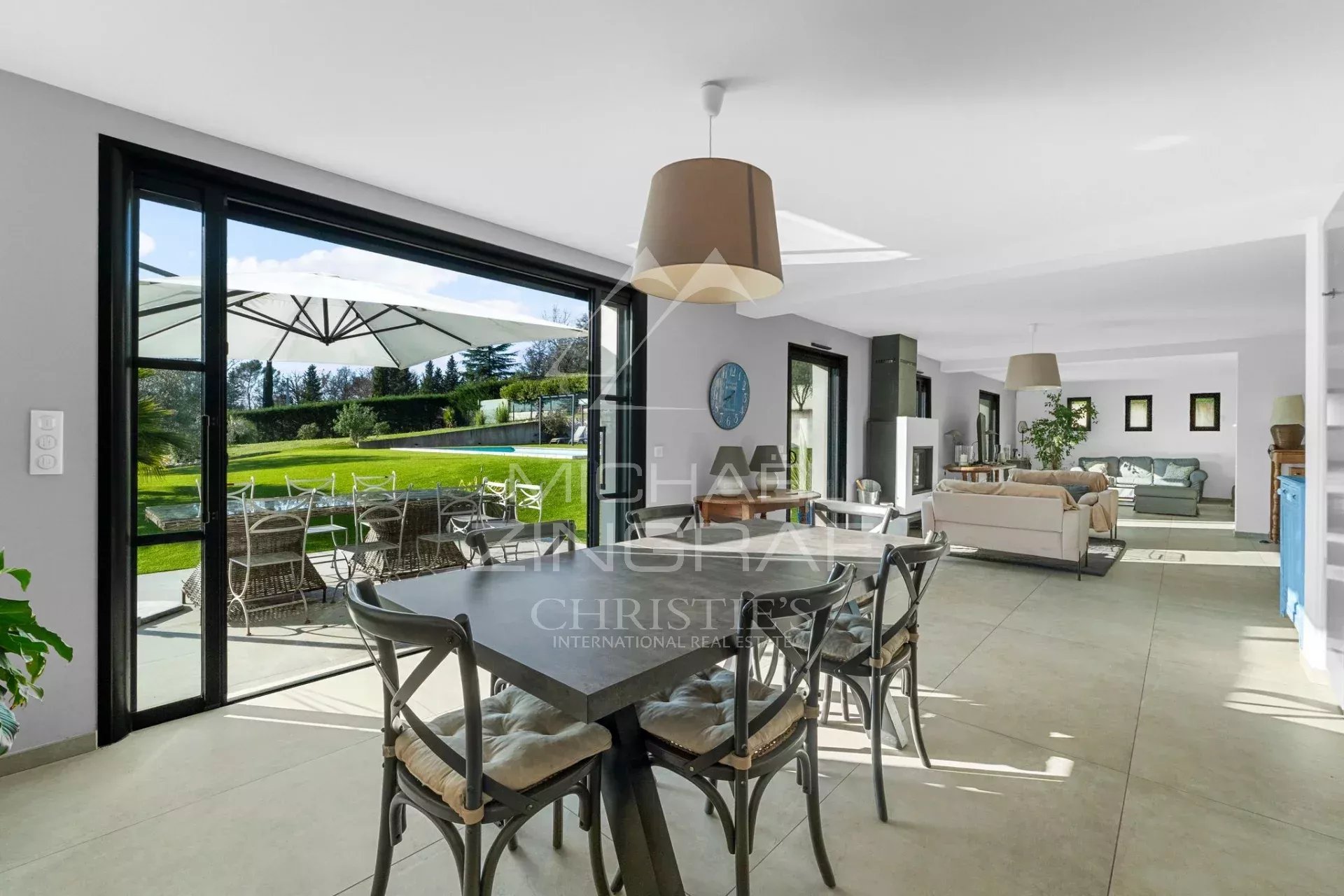 Située au cœur d’un quartier résidentiel prisé de l’arrière-pays cannois, cette agréable villa de style provençal moderne bénéficie d’un environnement privilégié, au calme absolu, au sein d’un vaste terrain de plus de 5 000 m² offrant espace et intimité.