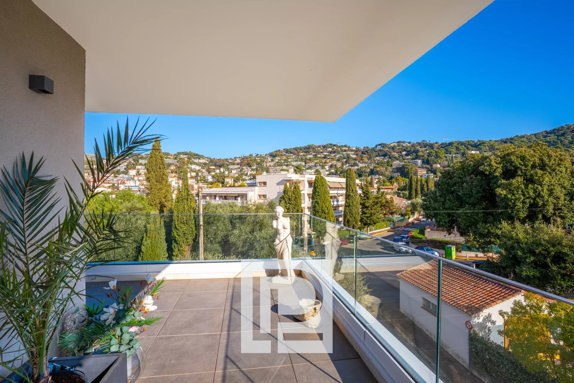 Au sein d’une résidence intimiste et sécurisée de standing de 2018 avec piscine, ce bel appartement en dernier étage offre un superbe panorama allant des collines alentours à la mer.