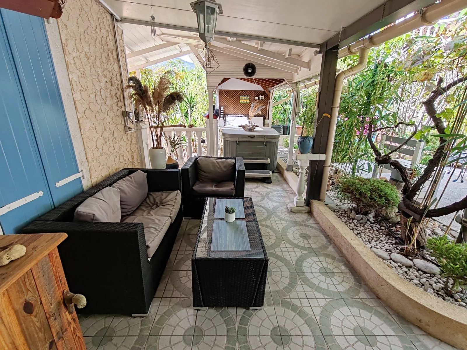 À l’étage, accessible par un escalier extérieur indépendant, le second appartement d’environ 58 m² comprend un séjour de 23 m², une cuisine séparée, deux chambres, une salle de bains avec water-closet, une véranda couverte d’environ 25 m² et trois terrasses disposées aux orientations est, sud-est et nord-ouest. La terrasse principale est équipée d’un jacuzzi intégré, véritable extension du séjour et promesse d’un espace de vie extérieur particulièrement qualitatif.