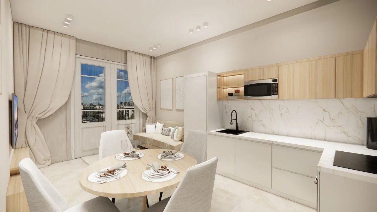 Le séjour lumineux, ouvert sur une cuisine américaine entièrement équipée, s’ouvre sur une terrasse de 8 m² offrant un bel aperçu sur la mer. La chambre, calme et fonctionnelle, dispose de rangements sur mesure. Une salle de douche à l’italienne et des WC indépendants viennent compléter ce bien où chaque détail a été pensé avec soin : parquet en chêne massif, climatisation réversible et finitions haut de gamme.