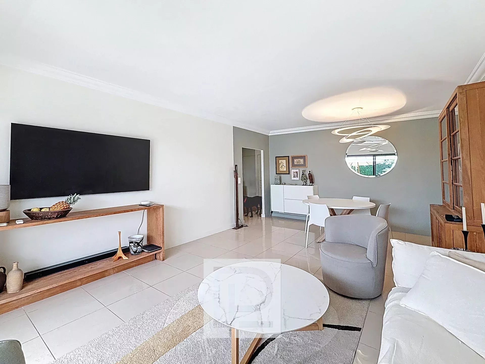 L’intérieur se compose d’un séjour/salle à manger lumineux, d’une cuisine indépendante très bien agrémentée, de deux chambres disposant chacune de leur salle d’eau et ainsi un bureau pouvant aisément faire office de 3e chambre selon les besoins.