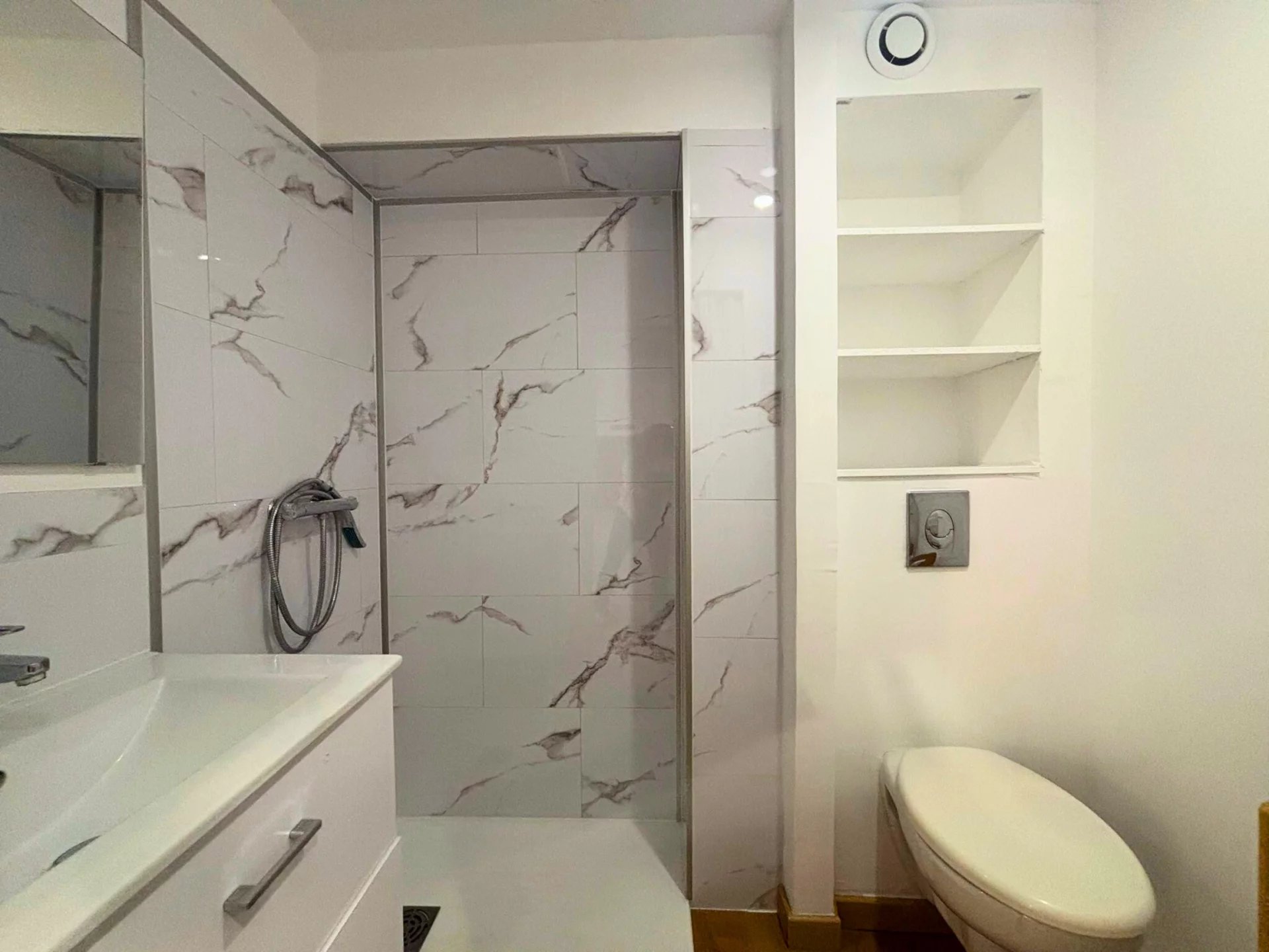 – Salle d’eau moderne avec large douche avec bac extra plat.