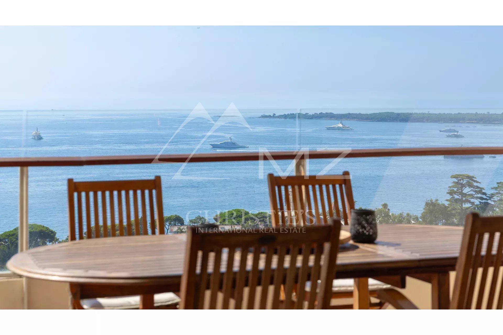 D’une superficie généreuse, le grand séjour lumineux s’ouvre sur une magnifique terrasse d’angle de 47,50 m², offrant une vue panoramique imprenable sur la mer, le Cap d’Antibes et la baie de Nice.