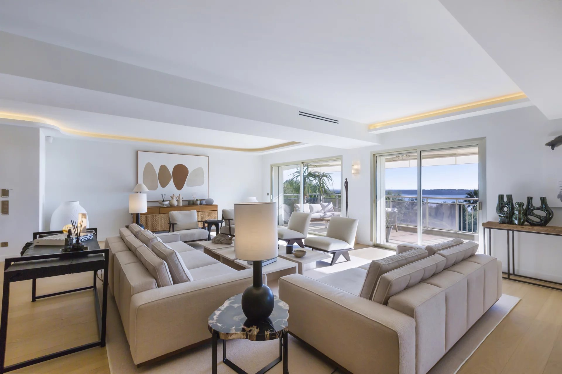 D’une superficie de 300 m², la villa comprend un vaste espace de vie avec un grand salon, une salle à manger et une cuisine ouverte. La chambre principale bénéficie d’une position privilégiée avec des vues exceptionnelles.