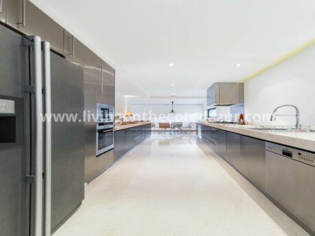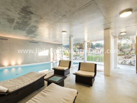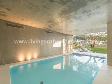 La villa contemporaine de Colares-Sintra est divisée en trois étages. Au rez-de-chaussée se trouve une suite parentale avec terrasse et salon privé, quatre chambres à coucher, une cuisine entièrement équipée et une chambre avec salle de bain pour une femme de ménage ou un concierge. Le salon spacieux de 100 m² offre de hauts plafonds et une cheminée romantique. À l’étage supérieur se trouve la mezzanine de 300 m² avec plusieurs espaces de loisirs et deux bureaux. À l’étage inférieur, vous trouverez un salon de 90 m², la salle de sport et l’espace de détente avec jacuzzi, sauna et piscine intérieure chauffée. Le jardin extérieur comprend une grande terrasse, une piscine, un coin salon, un barbecue et un garage de 80 m² pour plusieurs voitures. Cette propriété est située dans le parc naturel de Sintra, un site classé au patrimoine mondial de l’UNESCO et à seulement 15 minutes de Cascais.