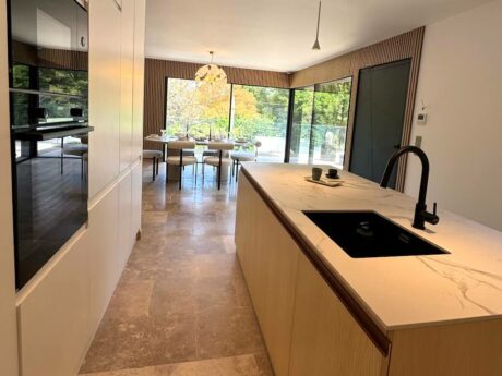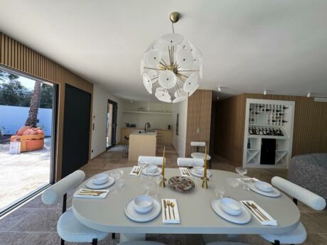 • Cuisine ouverte élégante, entièrement équipée avec des appareils haut de gamme, connectée de manière fluide au salon pour des réceptions sans effort.
