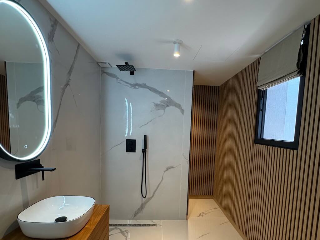 • Trois chambres spacieuses, chacune avec une salle de bain privée dotée de douches modernes (pas de baignoires).