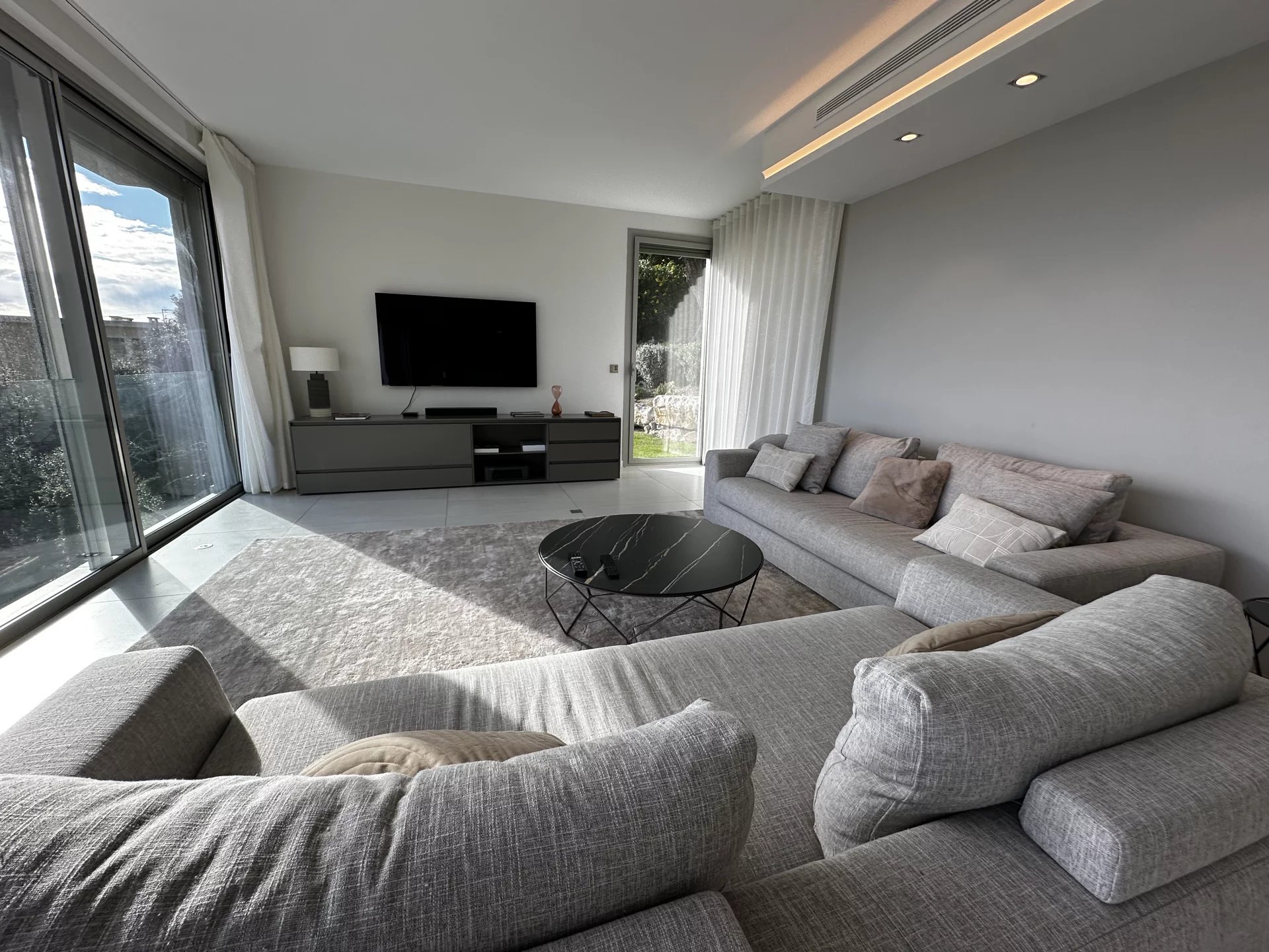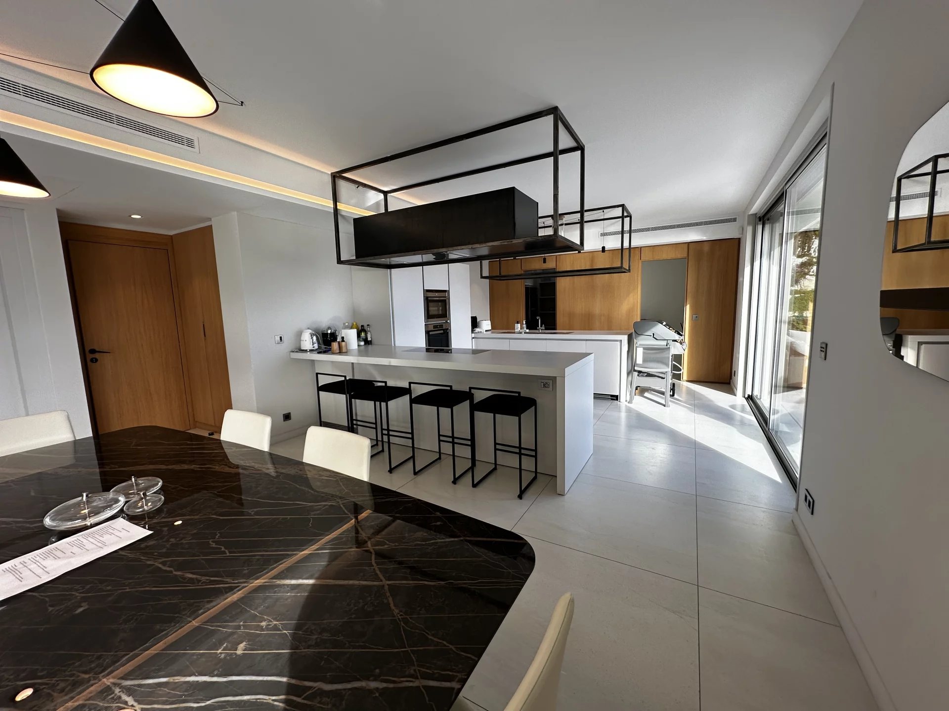 Un grand séjour lumineux avec une cuisine ouverte donnant sur une grande terrasse de 30 m2.