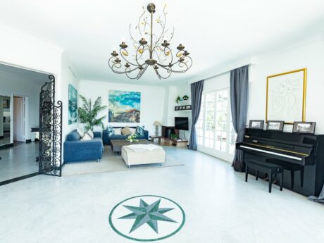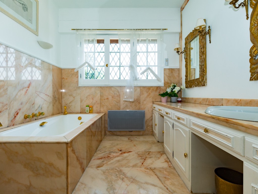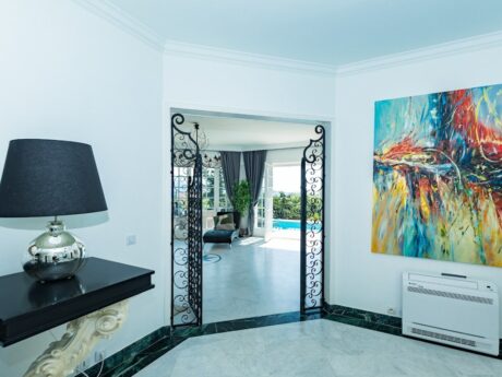 נכנסים לאולם רחב ידיים עם רצפות שיש. מה שמיד בולט הוא המסדרון הרחב לחדרי השינה השונים. זו לא הוילה הצרפתית הסטנדרטית שלכם עם מסדרונות צרים וחדרים צפופים. בסלון יש אח נעים ומעניק גישה למרפסת ולבריכה.
