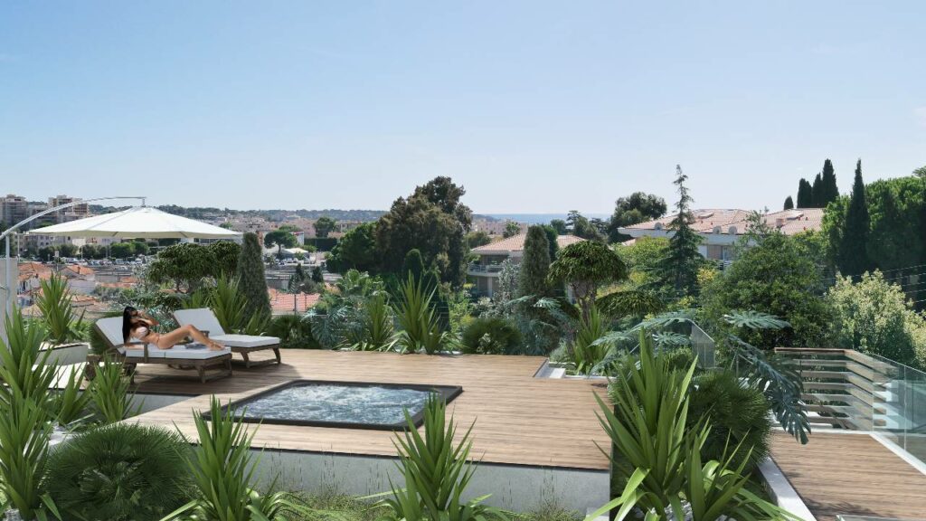 Questa piccola residenza a 2 piani con un’architettura contemporanea e raffinata è stata progettata dal famoso duo di architetti JEAN FOUSSAT & CORRINE BAPT. Il design comprende giardini privati con alberi mediterranei. I residenti godono di una piscina privata circondata da una terrazza in legno. Scegli tra 8 appartamenti di alta qualità di attici da 3 a 5 camere. Dall’ultimo piano si ha una vista sulle colline, sul mare e sul Cap d’Antibes. Ogni appartamento ha il proprio garage e cantina situati nel seminterrato della casa. Progettati per ottimizzare il benessere e la luminosità, gli appartamenti si aprono su splendide terrazze esposte a sud, così puoi goderti il sole della Costa Azzurra. La residenza soddisfa i più severi criteri di sicurezza e l’etichetta RT 2012 garantisce un isolamento termico e acustico ottimale.
