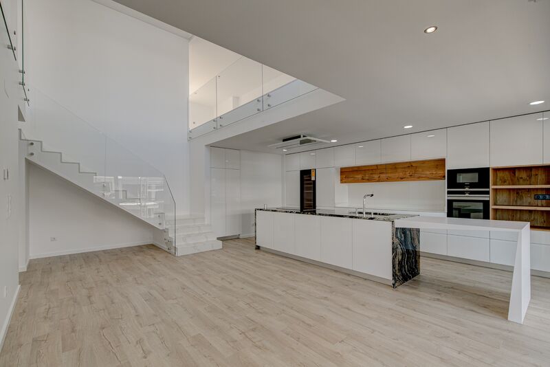 Fantastic apartment 4 duplex two fronts in Montijo, under construction. Excellent location at the gates of Montijo, close to the accesses to the Vasco da Gama bridge and close to all kinds of commerce and services. This 4 bedroom duplex apartment has 399sqm of gross area, which gives it a generous habitable areas. Located on the 4th floor, this property has four bedrooms, three of them oriented to the spring and served by a common balcony. One of the rooms is a generous suite. The apartment is complemented with a bathroom to support the other bedrooms and a support to the social area, a living room and kitchen in open space format and also a balcony with barbecue throughout the width of the apartment with a generous 19sqm. It is at the gates of Montijo, near the accesses to the Vasco da Gama bridge and close to all kinds of commerce and services, that is this new housing development. Consisting of three apartment blocks, this building has 30 new houses whose typologies range from T1 to T4, also with units T3 and T4 duplex. Noteworthy, not only its bold architecture, but also the level of excellence of its construction and finishes, with fully equipped kitchens with Siemens appliances and Liebherr vinoteca, electric and thermal blinds, electric underfloor heating, air conditioning with multi splits, dishes suspended in the toilets, central vacuum and also the installation of Vulcan solar panels for water heating. All these factors allow apartments to have a class A energy pre-certification. Finally, this apartment is complemented with a garage and storage room in the basement.