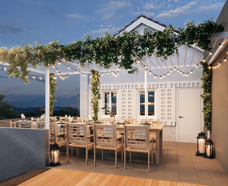1+1 Bedroom duplex flat with terrace and balconies, in Campo de Ourique. 1+1 bedroom duplex flat with 152sqm and a terrace of 37sqm. The flat has 1 suite with dressing room, it also has a balcony. The living room is very spacious with open space kitchen, and access to the terrace. On this floor there is also a support bathroom. On the lower floor it has a large space of 28sqm, where it has a bathroom and also a balcony. Jardim de Ourique is a new residential project located in Campo de Ourique, one of the most emblematic neighbourhoods of Lisbon. This new residential development stands out for its combination of authenticity, family atmosphere and central location. Completion is scheduled for June 2026. Located in an elevated area of the city, the private condominium offers wide views over Monsanto Park and the Alcântara valley. Among the highlights is a communal garden of about 3,500sqm, where there are vegetable gardens, an orchard, a playground and several leisure areas adapted to different age groups. The project consists of only 10 apartments from T1, T2 to T3 typologies all with private outdoor spaces. It presents itself as an attractive proposal both for own residence and for investment, in one of the areas with the greatest potential for capital appreciation. Among the amenities available are a gym, water tank, children's areas, smart lockers and a coworking area, designed to improve leisure, comfort and day-to-day functionality. Just 100 meters away, there is parking for residents with fees starting at EUR35 per month. Campo de Ourique offers a privileged location, close to institutions such as the Lycée Française, the Campo de Ourique Market, the Jardim da Parada, the Amoreiras, as well as a wide variety of shops, services and transport options. This is a rare residential proposal in the city centre, bringing together quality of life, convenience and future appreciation.