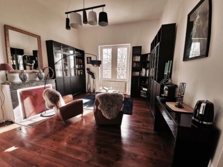 The living room has a double north/south aspect. There are four bedrooms, each with its own shower room, and a library. Garden with swimming pool. 4 guest rooms in the castle. Contact us for a visit and a personal selection of alternative properties. We offer a full service in real estate, from selection, visits and negotiations to financing, renovations and the most effective fiscal structure. Use our extensive expert network!