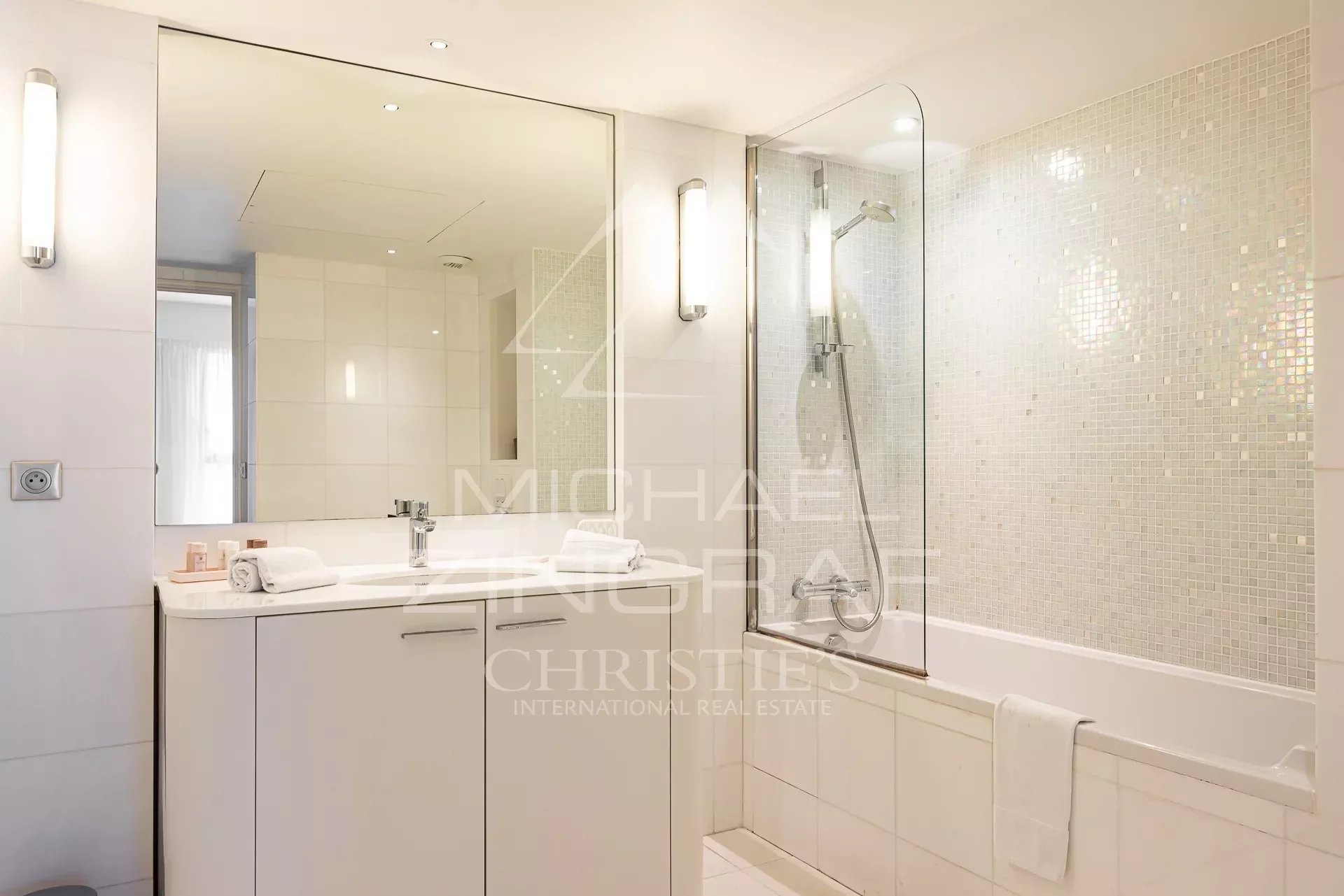 In Cannes, in the ‘banana’ town centre, next to the Carlton hotel, in a quiet street between the Croisette and Rue d’Antibes, this splendid flat is perfectly distributed and designed.