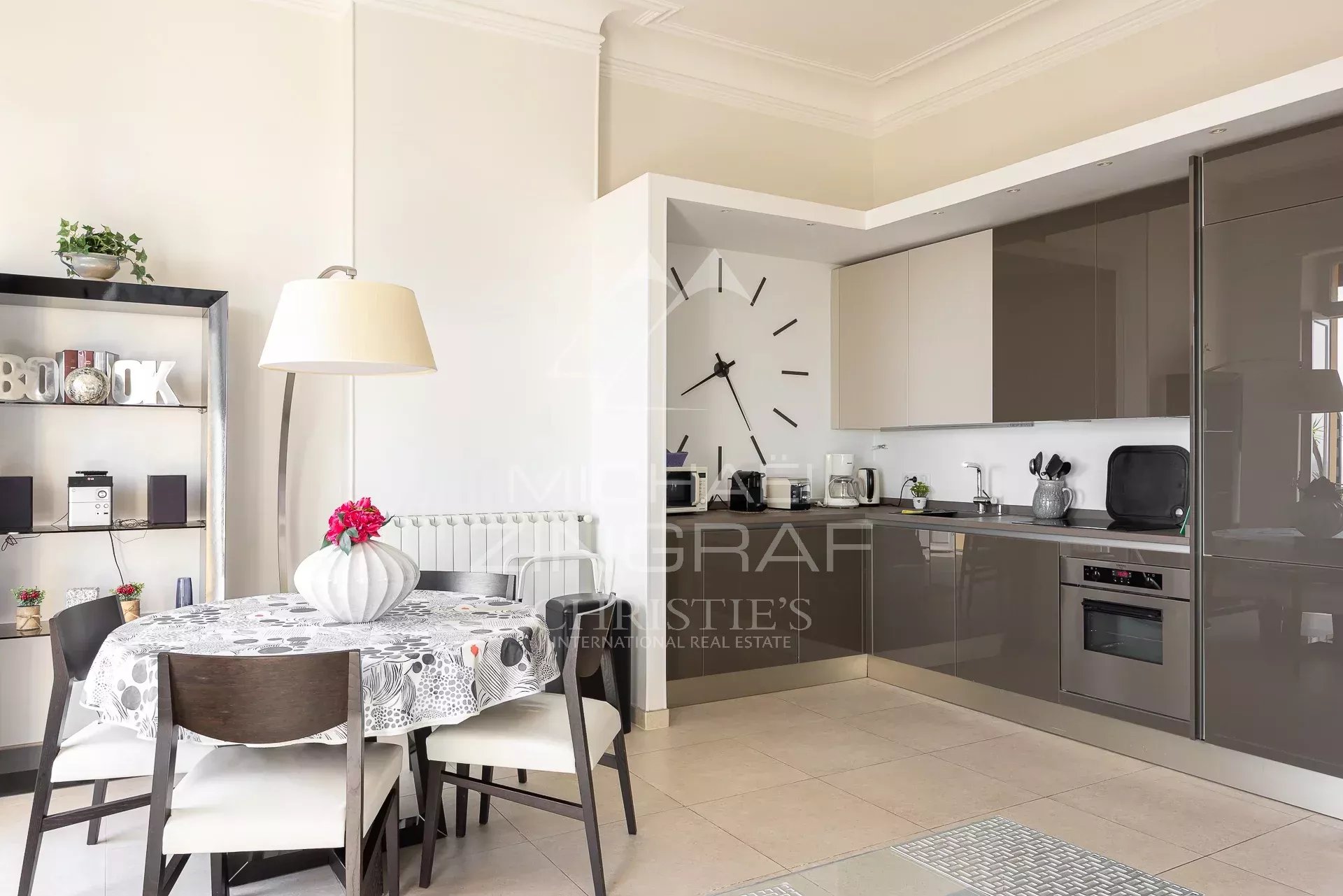 Located in a prestigious residence in the sought-after Croix des Gardes area, this magnificent 91 m² 3-room apartment combines brightness and elegance. It features a living and dining area opening onto an outdoor space with a panoramic view stretching from the Lérins Islands to the Esterel mountains. The fully equipped open-plan kitchen blends seamlessly with the living space. Two bedrooms, one of which offers a sea view, a bathroom with toilet, a shower room, and a guest toilet complete this beautiful apartment.