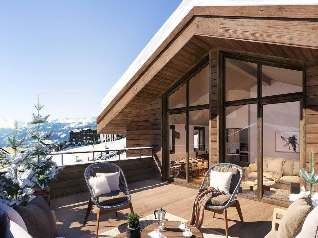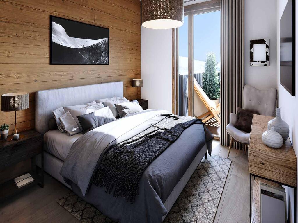 The new ski apartments offer beautiful views of the resort and surrounding mountains. Top-of-the-range amenities & sophisticated décor! The 84 apartments welcome you in a cosy atmosphere: wood panelling, modern and warm décor, etc. They have all the comfort of a mountain interior. For owners who wish, a chimney is optional. Delivery Q3 2025.