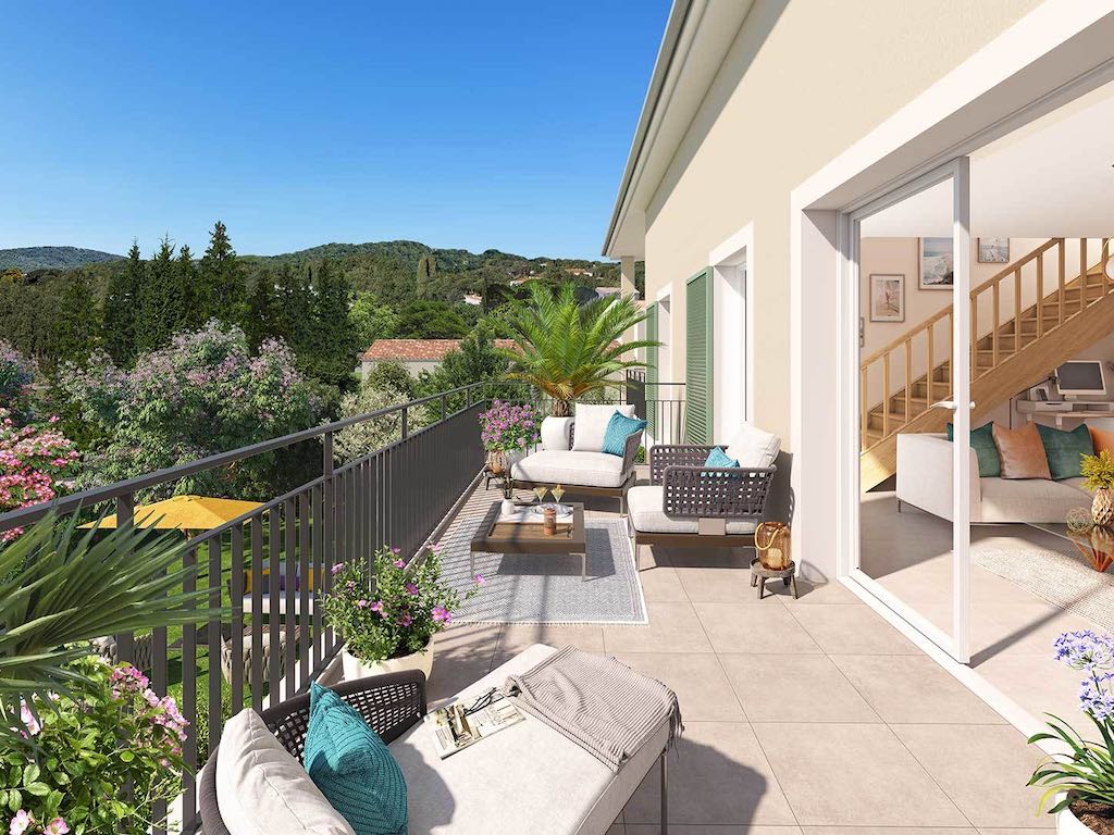 Beauty radiates both inside and outside the apartments, enhanced by beautiful sunny balconies. Here we take time to live while contemplating the perspectives of the surrounding hills. The ground floor apartments have a terrace that opens onto a private garden for mild afternoons under the cool of the trees. For those who prefer more private spaces, the top floor apartments have intimate balconies in the spirit of Saint-Tropez, revisited and protected by the roof of the bastide.