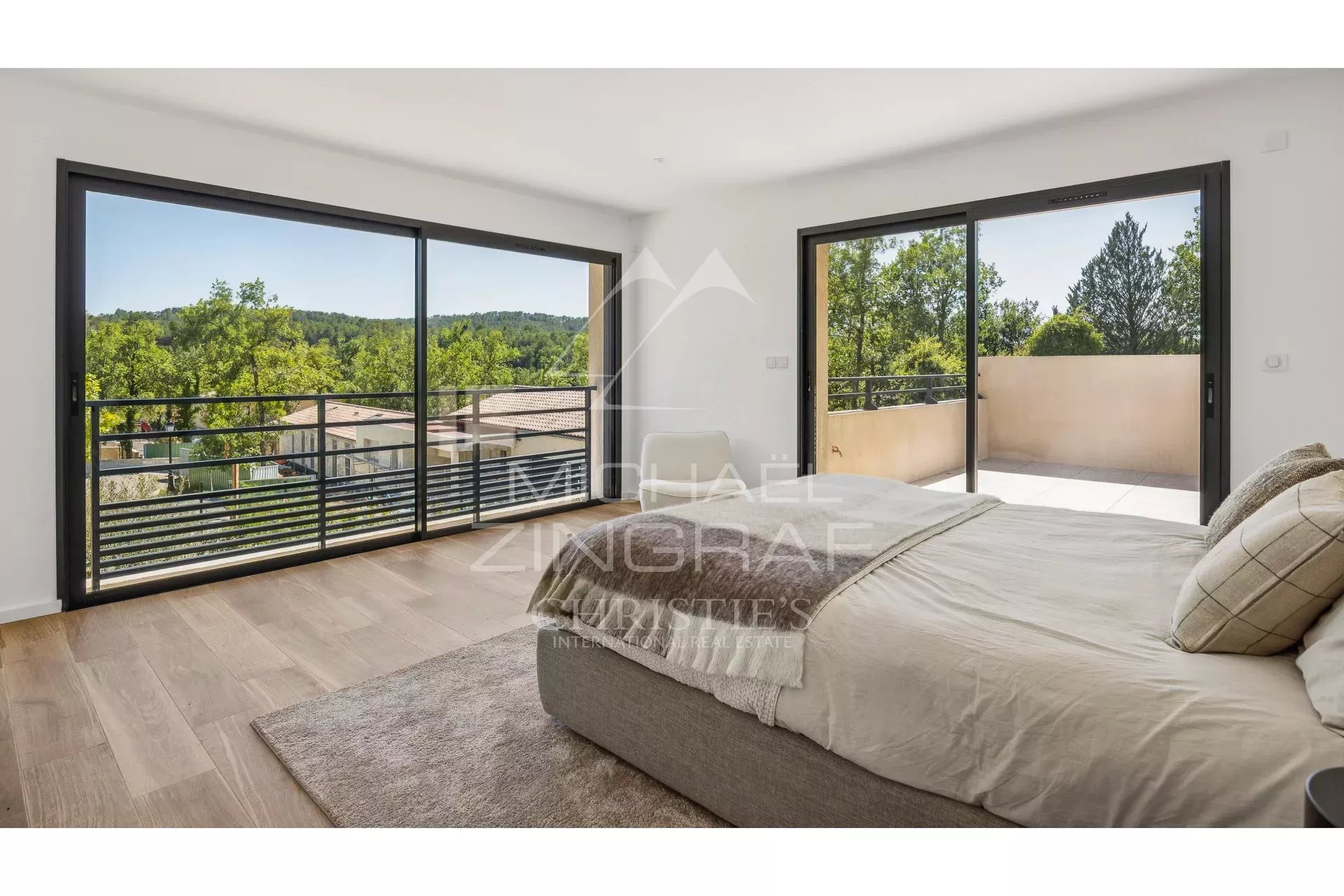 From the moment you step inside, a spacious and light-filled living area welcomes you, flowing seamlessly into a fully equipped open kitchen ideal for stylish entertaining. Expansive terraces extend the living space outdoors, offering a peaceful setting surrounded by nature.