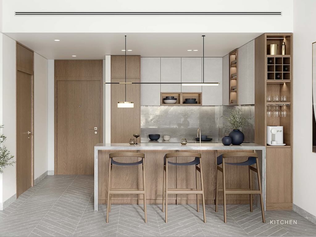 The Crestmark offers a limited collection of studios and 1 to 3-bedroom apartments, all designed with generous layouts (up to 327 m² for the largest units), full-height windows, fully equipped kitchens, spacious balconies, and interiors inspired by natural wood and soft light. One-bedroom apartments are currently available from €757,000, with an average living area between 77 and 95 m², including one private parking space.