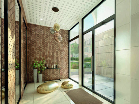 The entrance halls are easily identifiable and participate in giving the residence a remarkable overall quality. These are pleasant spaces for spontaneous sociability between neighbours. Designed by colourist architect Solveig Tonning of workshop 1.2.3 Color, they provide an illustration of additional care taken in the design of this project and his quest for the art of living. Upon entry, the tone is given. “On the ground, we opted for a noble, traditional and very aesthetic material: shiny marble-look tiles.