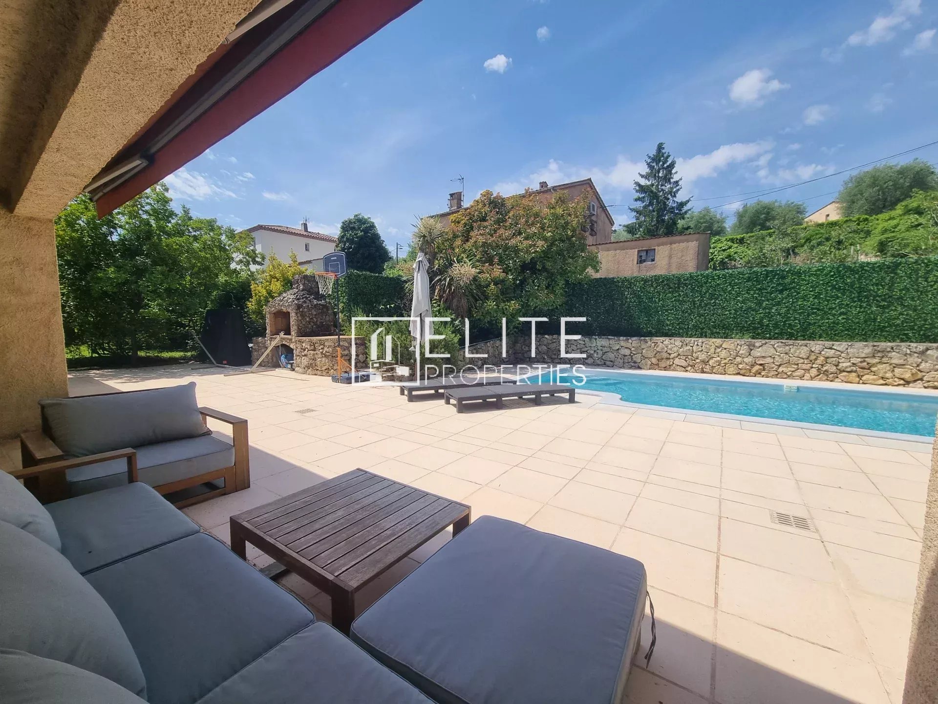 Completely renovated 10 years ago, it boasts a lovely, light-filled living room, 4 comfortable bedrooms and two terraces overlooking the 1,365 m² flat plot. A large swimming pool, also in excellent condition, completes this rare property in the area.