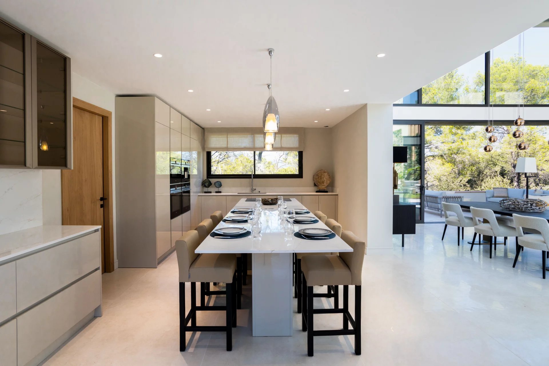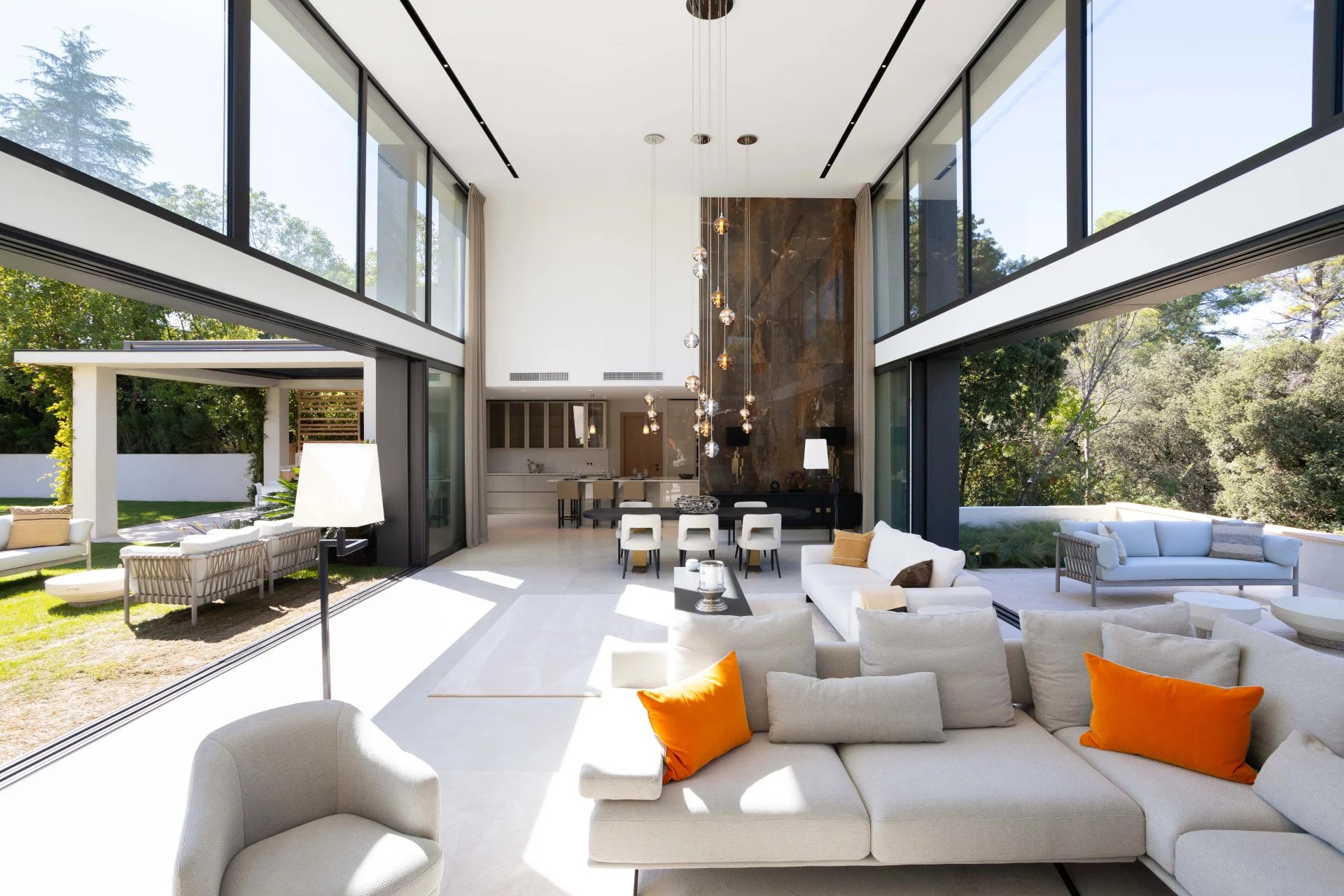 This newly built contemporary villa, located in a private, secure estate in Mougins, embodies modern luxury with its expansive 700 sq.m of living space. Completed in 2023, the villa features double-height ceilings in the large living and dining area, a fully equipped kitchen with utility room, and a main bedroom suite with a dressing room, complemented by an additional en-suite bedroom on the same floor. The second floor hosts three more en-suite bedrooms. The ground floor is a hub of entertainment with a cinema room, wine cellar, gym, playroom, an additional bedroom with a shower, and a laundry room. Outdoors, the villa boasts a 14x4m heated swimming pool, a summer kitchen with a dining area, extensive terraces, and a lift, making it the perfect luxury home.