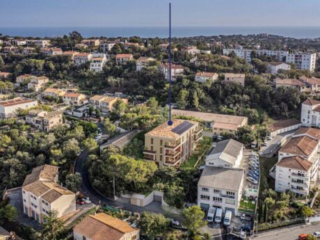 The charming new build is ideally located halfway between the city centre, the beaches and the essential shops. On the heights of the city, the residence was proposed as the perfect balance between proximity to the city and nature while preserving the advantages of its location that give it a natural cocoon of vegetation.