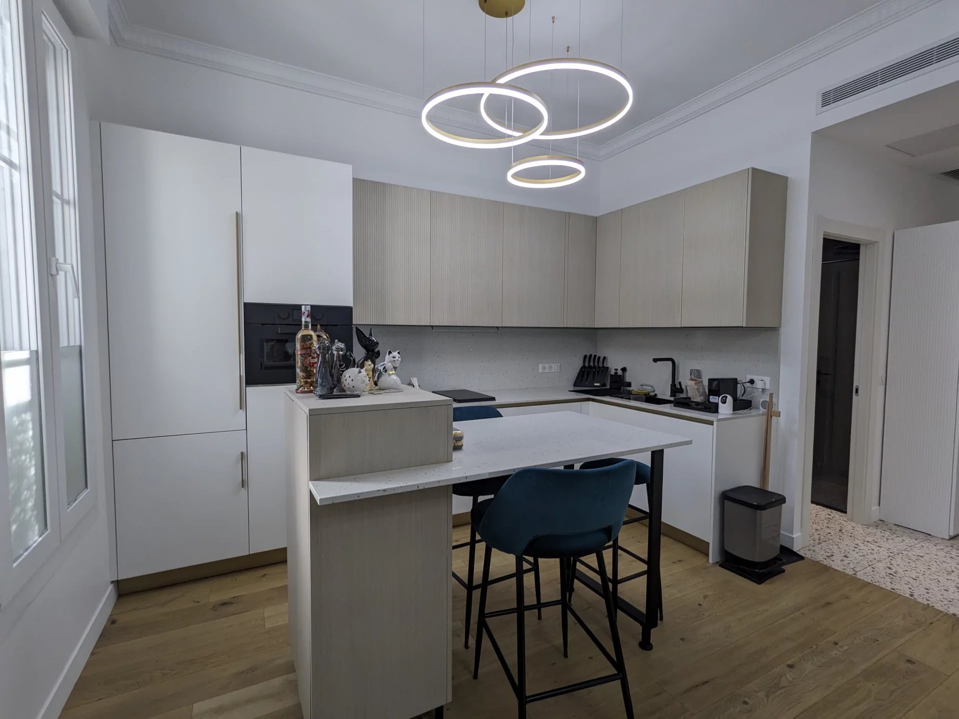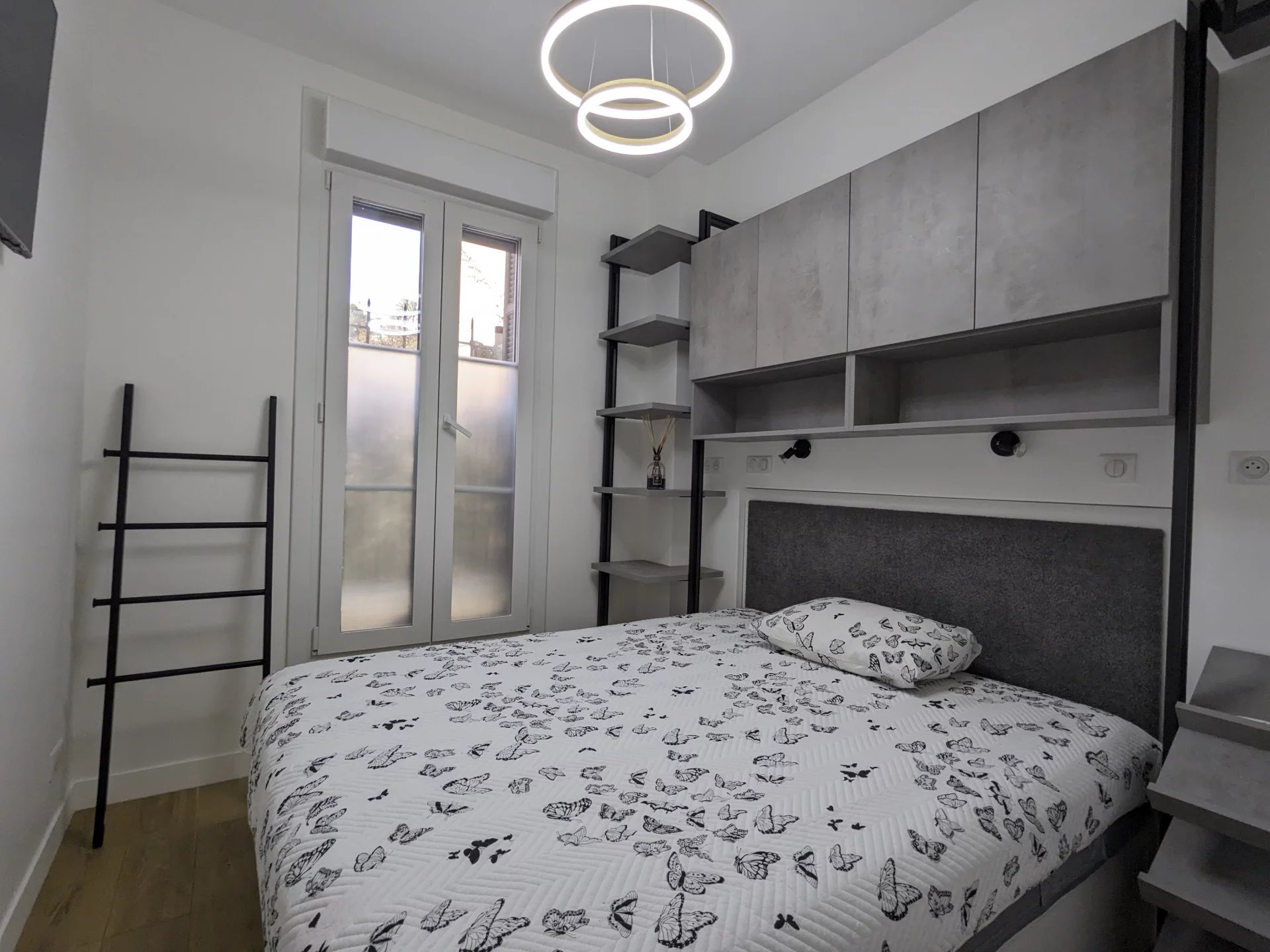In Nice, on the iconic Promenade des Anglais, within a secure 1920s residence set back from the noise of the traffic, this beautifully renovated 55 sqm ground-floor apartment is now available. The property opens onto a bright south-facing living room that enjoys warm natural light throughout the day. The fully equipped kitchen seamlessly extends from the main living area, offering a practical and elegant layout.