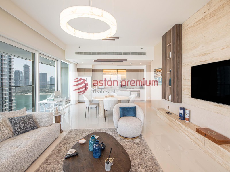 Aston Premium Real Estate are delighted to present this three-bedroom plus maids apartment in the recently handed over Grand Bleu. Offering unrivaled views of the palm jumeirah, this apartment boasts a full palm views, encompassing luxury living with a minimalist approach.
