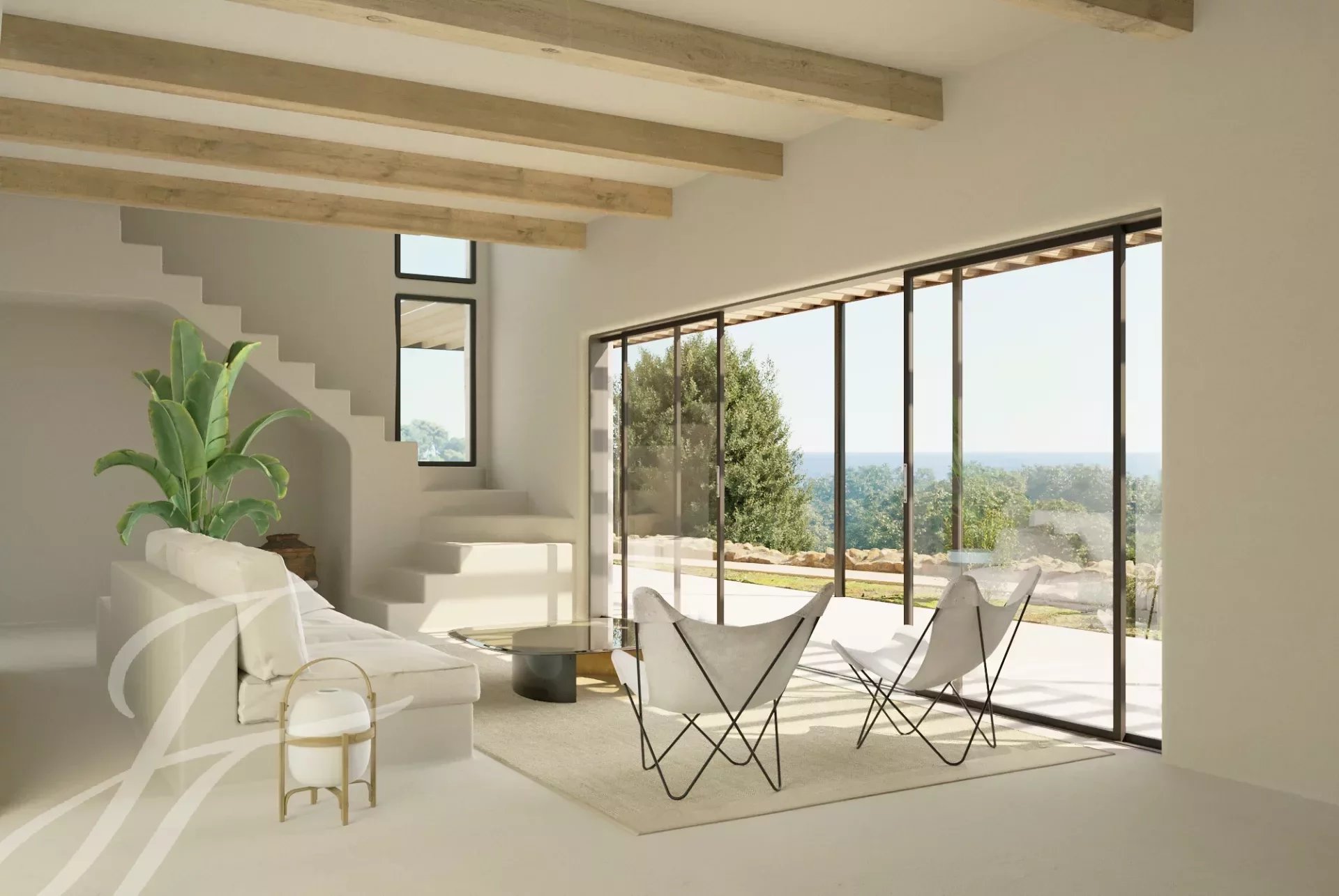Plot of land with project to build a detached house with swimming pool located in the area of San Agustin – Port des Torrent, close to the beach and only 10 minutes away from San Antonio.