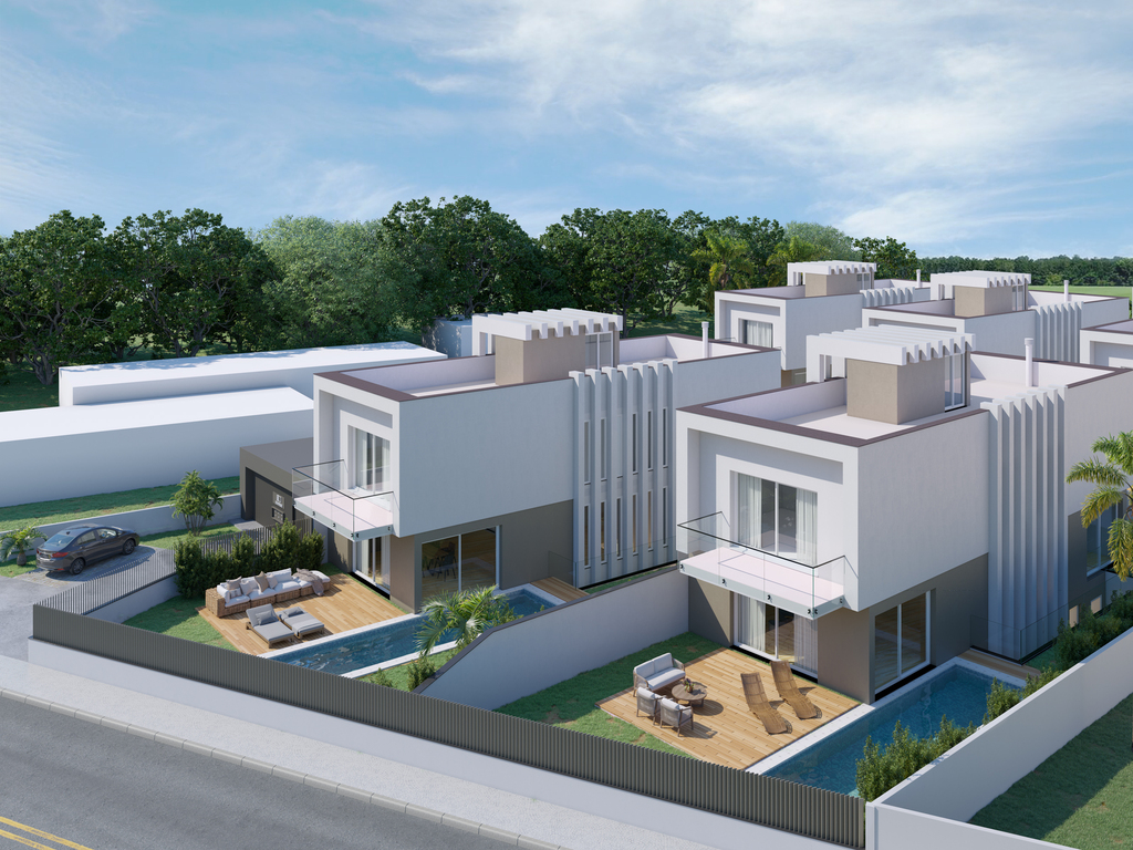 A fantastic new condominium is born in the village of Juzo in Cascais. The Condominium includes five luxury villas of typology T3 +1, distributed over two floors and also a basement. Standing out for its high quality of construction, luxury finishes and sun exposure, this development is part of a prime location in Cascais. All villas have private gross areas between 336m2 and 346m2 and also gardens and private pools, as well as garage for 4 cars.