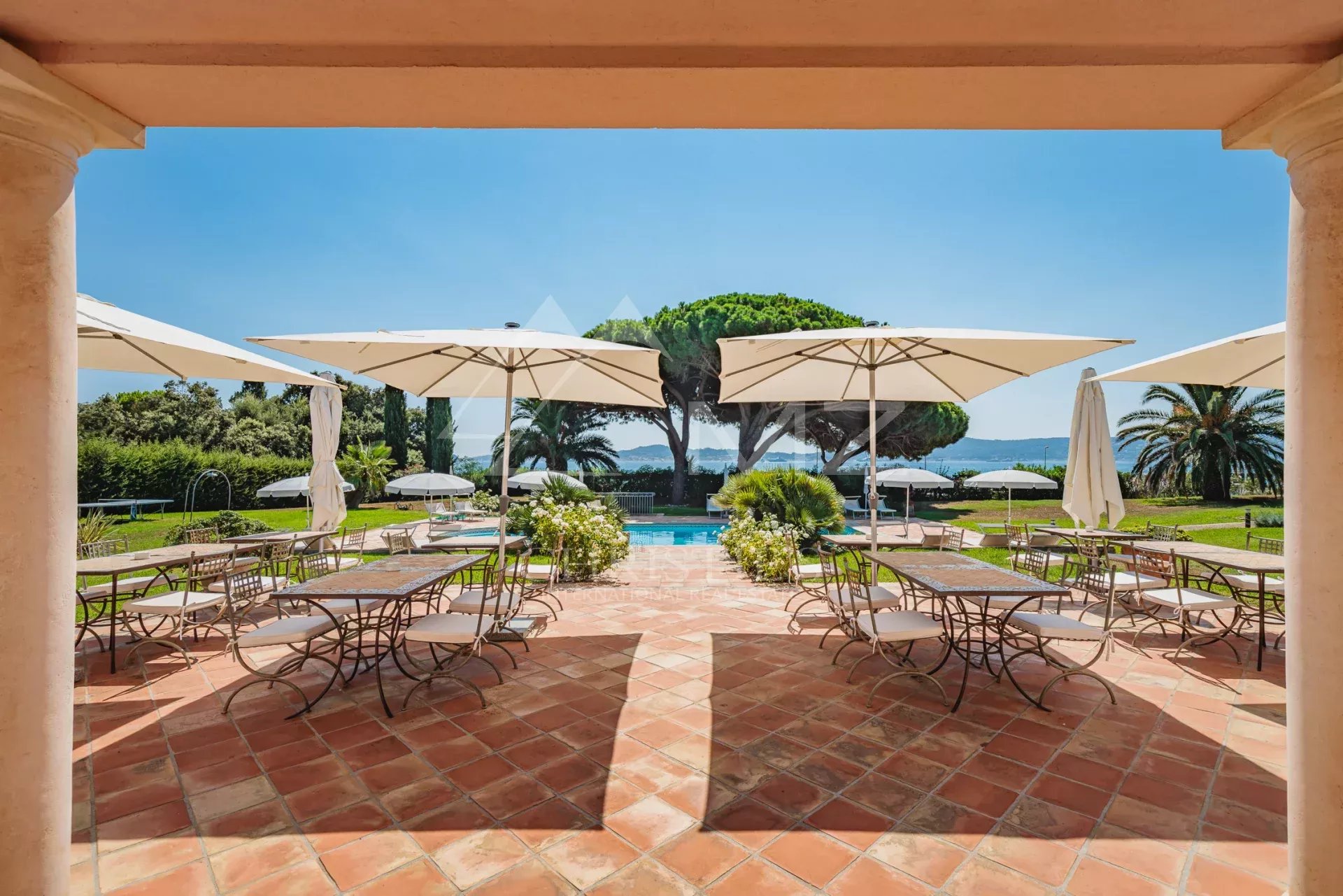 Offering breathtaking panoramic sea views stretching all the way to the village of Saint-Tropez, this residence of approximately 614 m² of living space has been designed to fully enjoy the gentle seaside lifestyle.