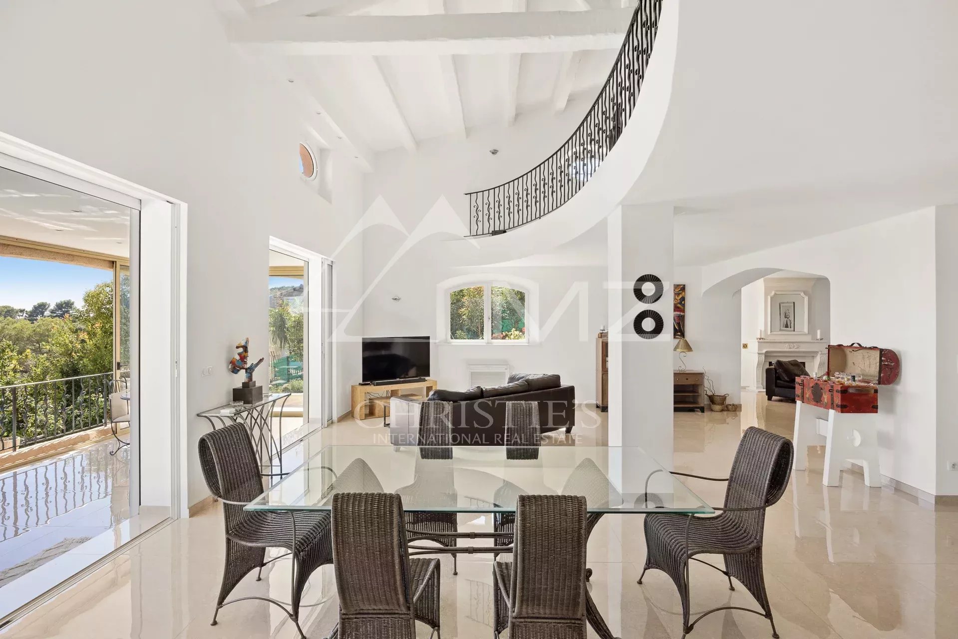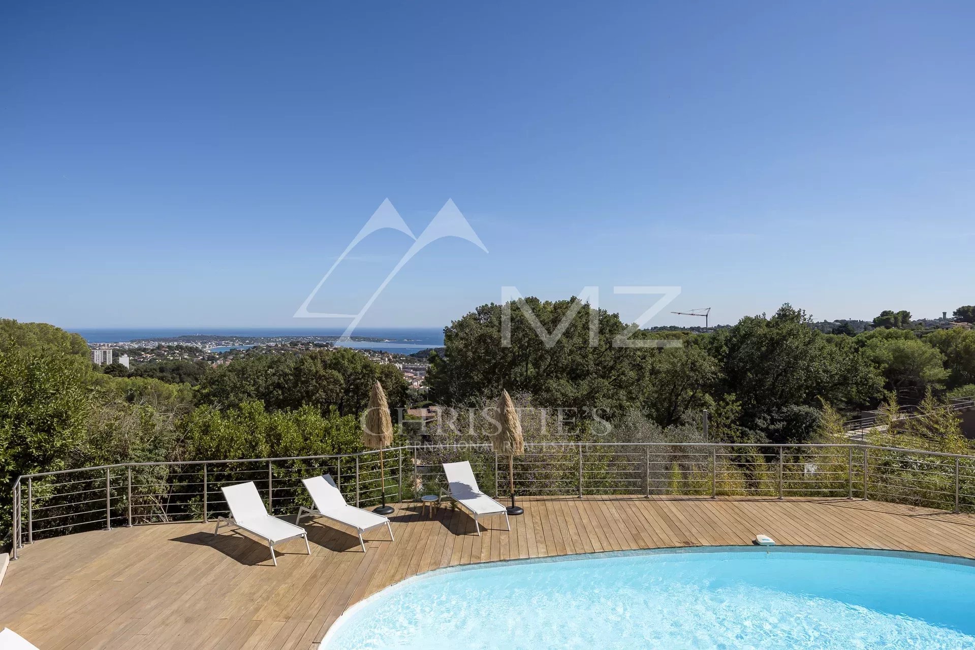 This almost 300 sqm pretty villa, completely renovated, with a beautiful sea view of Cap d’Antibes, is located in a dominant position, in a very quiet area close to everything.