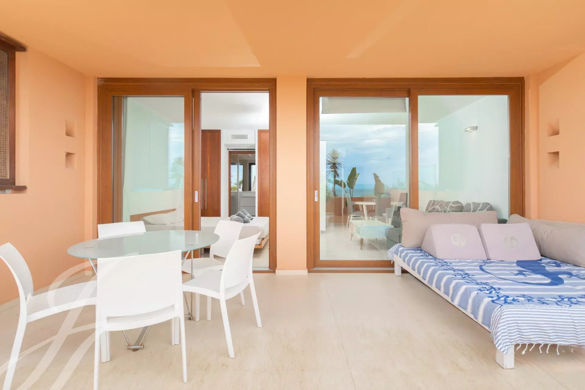 Located on the seafront in Playa d’en Bossa, this apartment offers a unique opportunity to enjoy a Mediterranean lifestyle right by the sea. Its privileged position allows you to admire the stunning sea views from the spacious 20 m² private terrace, an ideal space to relax, soak up the sun, and enjoy the refreshing sea breeze.