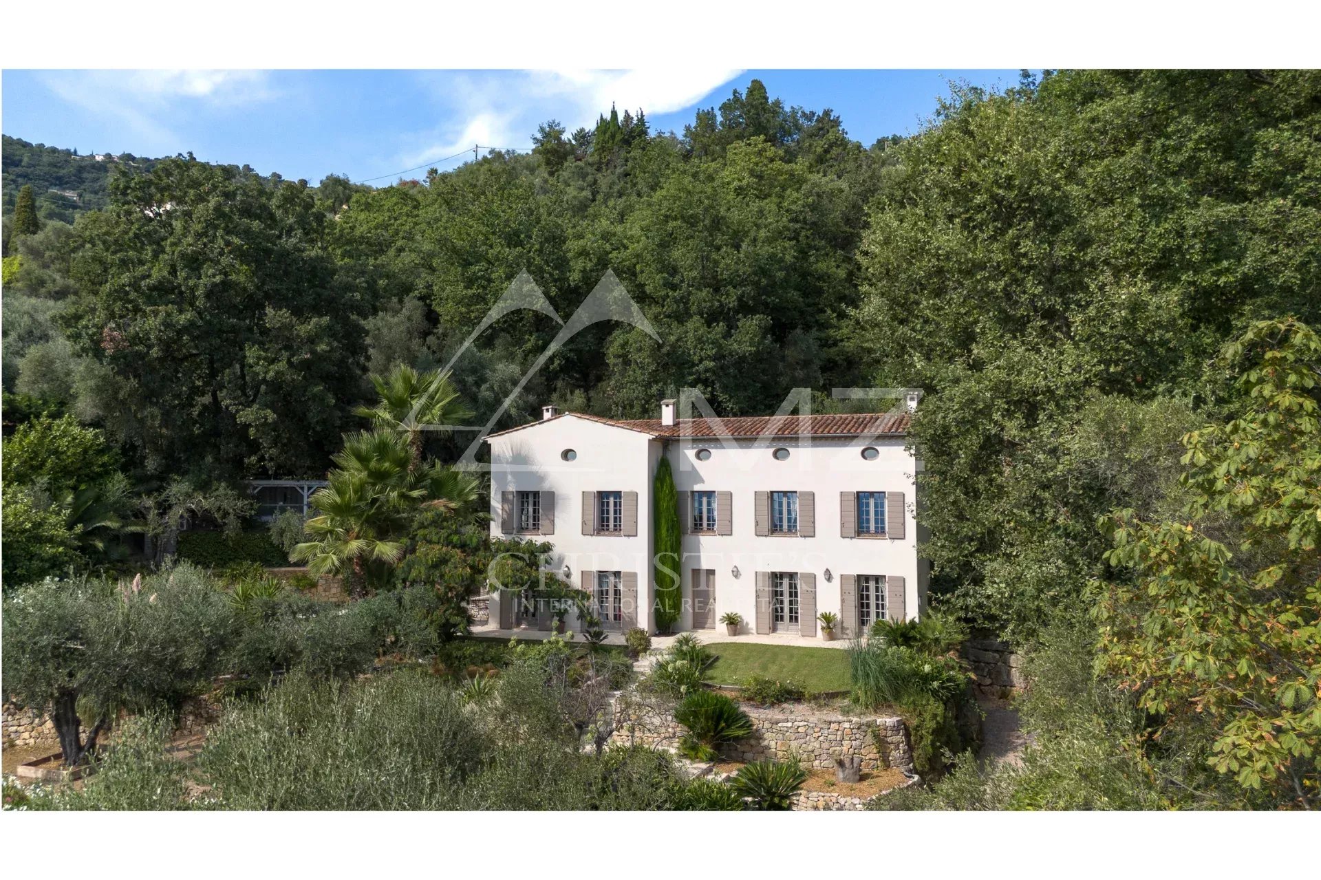 Modern villa on the Balcons de la Riviera. Built in 2023, it offers around 400 sqm of absolute comfort in its clean living spaces, all facing the horizon with views of the Bay of Cannes and its sister islands of Lerins, the Tuscan-style hinterland and Lake Saint Cassien. This elegantly appointed residence is just a stone’s throw from the stunning village of Cabris, which is increasingly sought after for its charm, panoramic views and unique ‘happy few’ atmosphere. “La Belle” offers five suites, a guest house studio, a 130 sqm living room adjacent to a 33 sqm dining area, and a 160 sqm single-level interior perspective with the terrace leading to the swimming pool with its panoramic views. The surrounding countryside offers a lush green footpath on the outskirts where the lucky ones can spot the deer on the hill. Enjoy your stay!